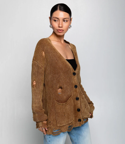 Кардиган – это одежда, которая подчеркивает уникальность каждой женщины. Данная модель кардигана выполнена из 100% хлопка и отлично подойдет для демисезонного периода. Его предпочитают покупательницы, которые ценят сочетание качества и стиля. Фасон подчеркивает привлекательность фигуры и придаёт образу особую изюминку. Компания знает, как разработать модные и стильные решения. Для пошива использована мягкая и тёплая ткань, которая характеризуется отличным качеством. Даже после большого количества стирок изделие не потеряет первоначальной красоты. Вы обязательно будете носить его с радостью. Обратите внимание на детали – рваности придают кардигану эффектный и современный вид. Чтобы вы были уверены в размере, мы представили на странице таблицу. Воспользовавшись ею, вы сможете самостоятельно обмерить себя и удостовериться. Установленная нами цена является доступной. Не откажите себе в удовольствии быть элегантной и стильной! Рост модели 164, 83-61-89.
