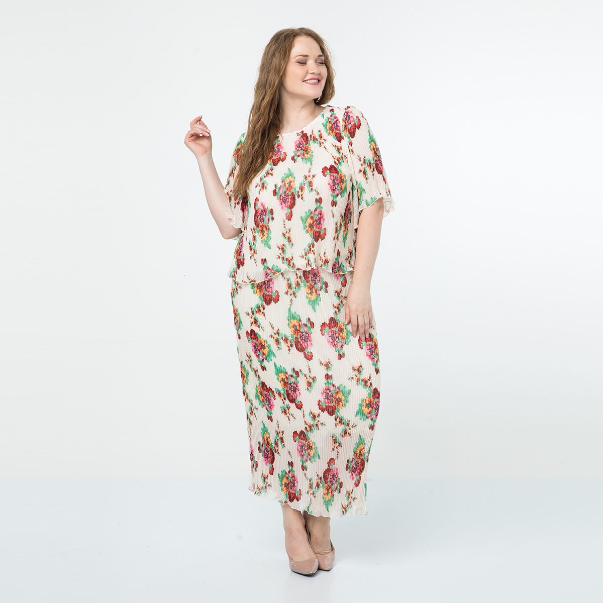 ст. цена1400руб.! Костюм, текстиль, блуза, юбка, молочный
