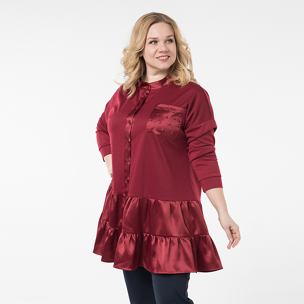 ст. цена1400руб.! Туника, шифоновое полотно, бордовый