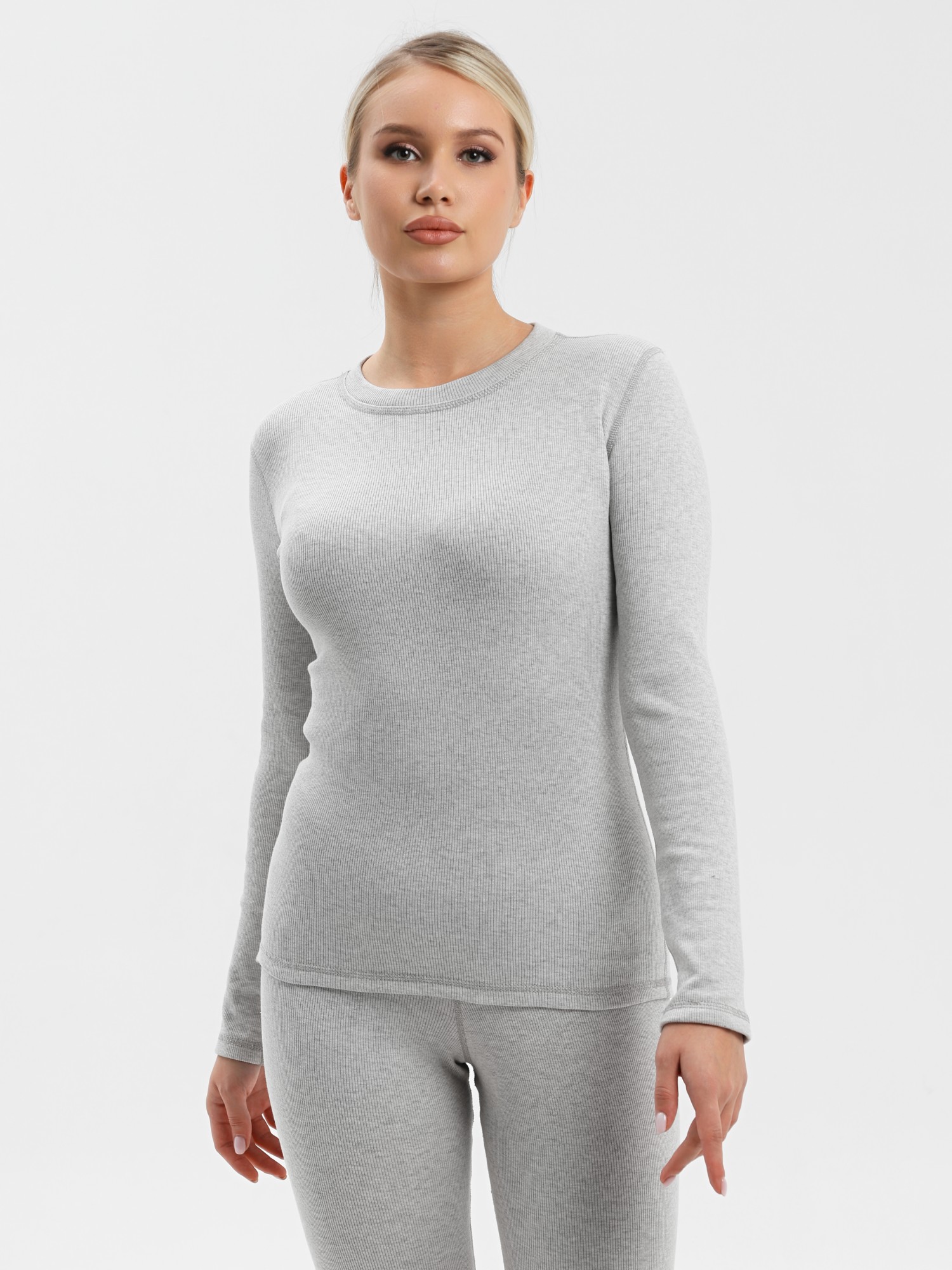 Футболка – прилегающего силуэта, с длинными втачными рукавами, горловиной овальной формы, обработанной втачной планкой из основного материала. Подгибка низа изделия и рукавов, шва втачивания планки в горловину обработаны пяти ниточной строчкой в цвет основного материала.