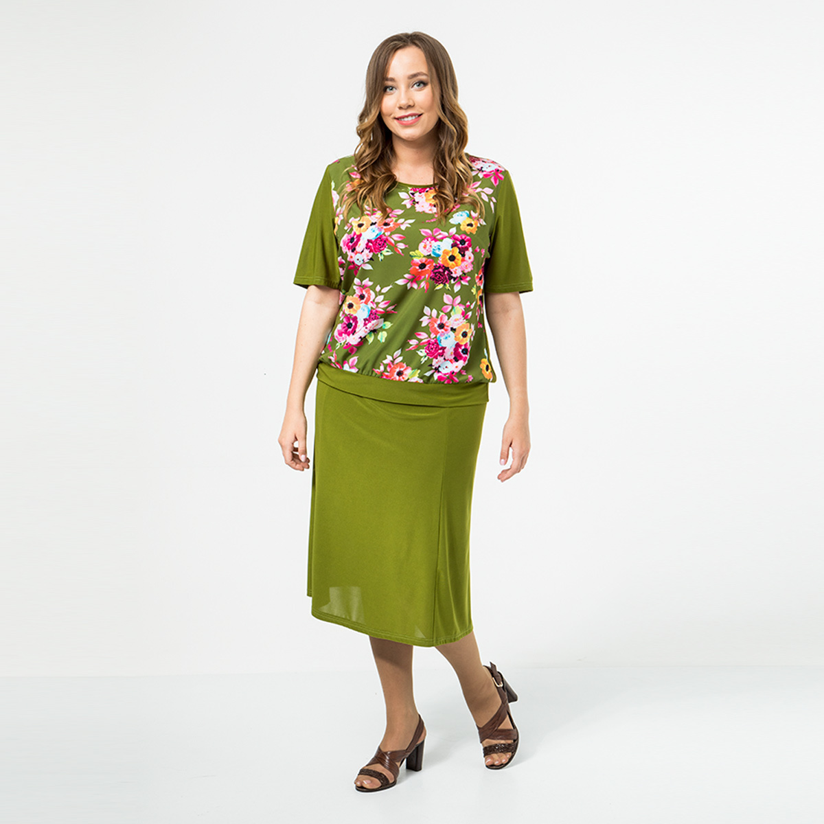 ст. цена1500руб.! Костюм, трикотаж, блуза, юбка, оливковый