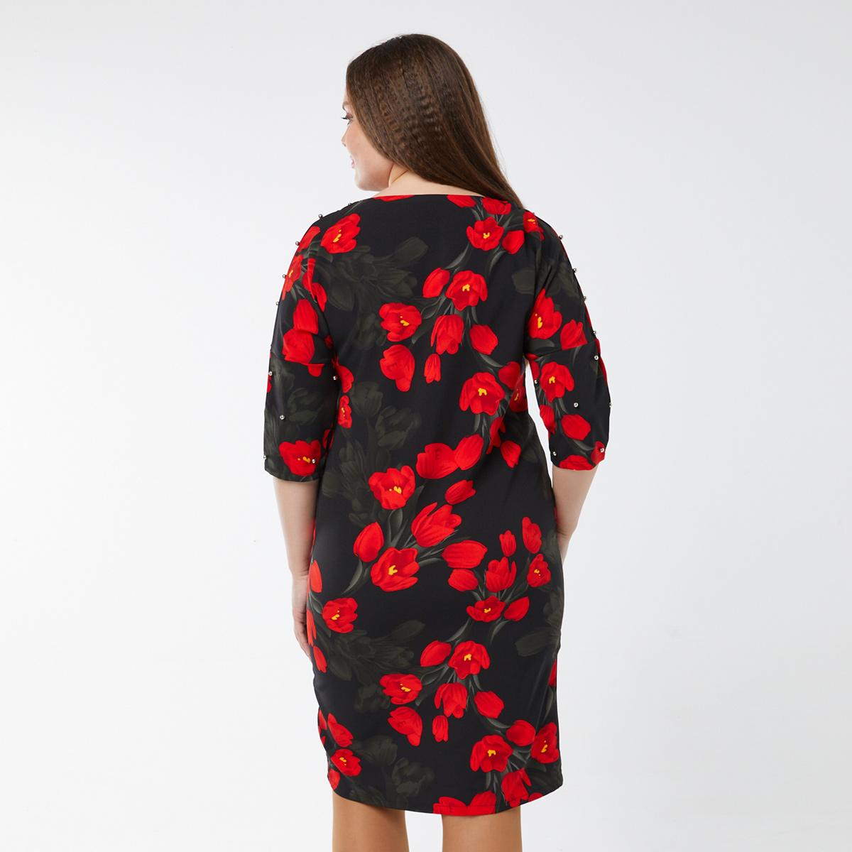 ст. цена1500руб.! Платье, текстиль, черный, красные тюльпаны