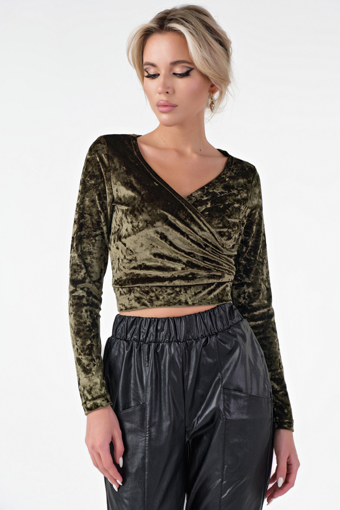 ст. цена1529руб.! Топ бархатный укороченный с длинными рукавами зеленый