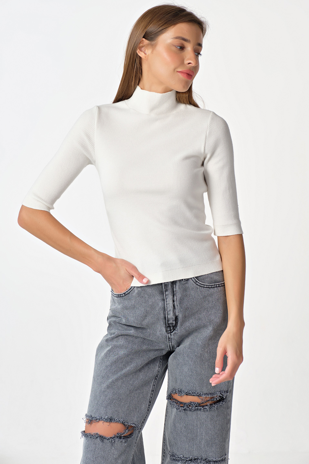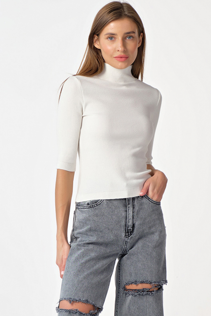 ст. цена1533руб.! Джемпер вязаный облегающий с горлом молочный