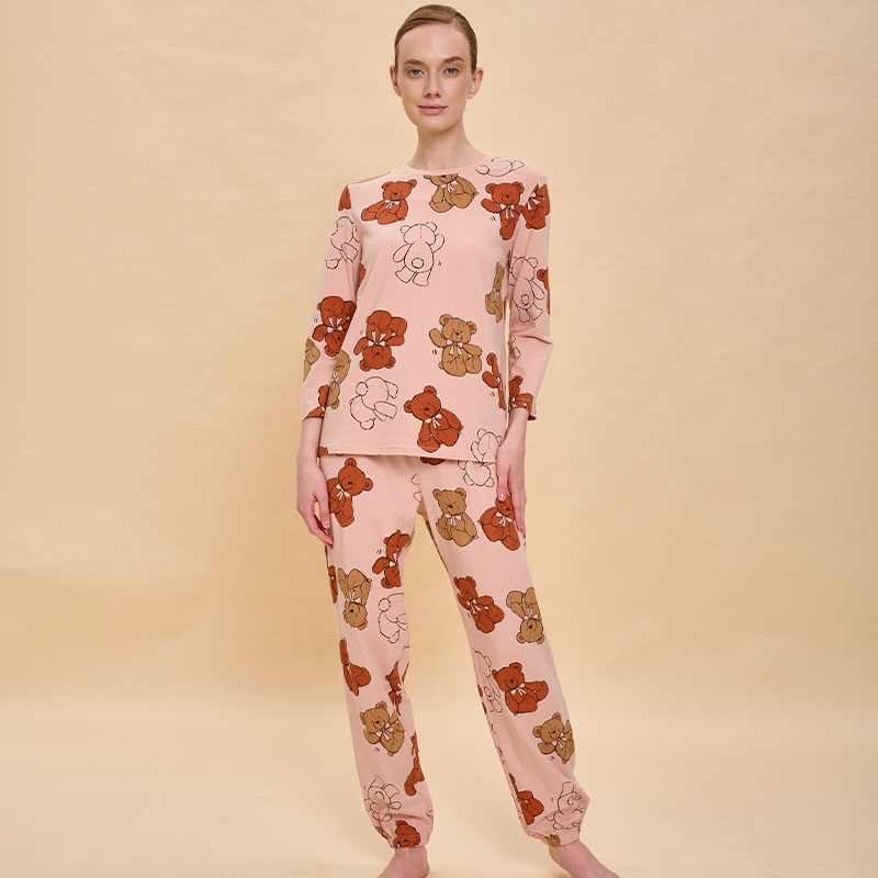 Состав: верх: 95%хлопок 5%эластан, низ: 95%хлопок 5%эластанОписание: Окунитесь в уют с коллекцией женских пижам Pelican! Стильный брючный пижамный костюм из премиального хлопка создан для тех, кто ценит качество, удобство и трендовый дизайн даже в домашней обстановке. Особенности модели: Модный лонгслив – женственная футболка прямого кроя среднего объема с длинным рукавом. Трикотажные брюки – удобные штаны на мягкой резинке, с широкими манжетами для идеальной посадки. Дышащая ткань – гарантирует максимальный комфорт и свободу движений. Эластичный и прочный принт – сохраняет насыщенность после множества стирок. Стильная пижама со штанами подходит для любого сезона. Легкий трикотаж дарит комфорт как летом, так и в прохладное время года. Просторный крой домашнего костюма делает его идеальным для сна, отдыха, уютных вечеров или пижамной вечеринки. Домашний комплект двойка – идеальный выбор для тех, кто любит модную хлопковую пижаму. Одежда свободного покроя для дома обеспечивает комфорт и свободу движений. Женская пижама весенняя представлена в универсальном размерном ряду, что позволяет выбрать идеальную посадку. Бежевая с принтом мишки, она подчеркнет ваш стиль и создаст уютную атмосферу. Красивая трендовая пижама для повседневной носки или стильной фотосессии.