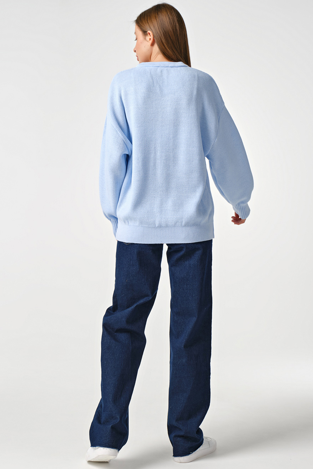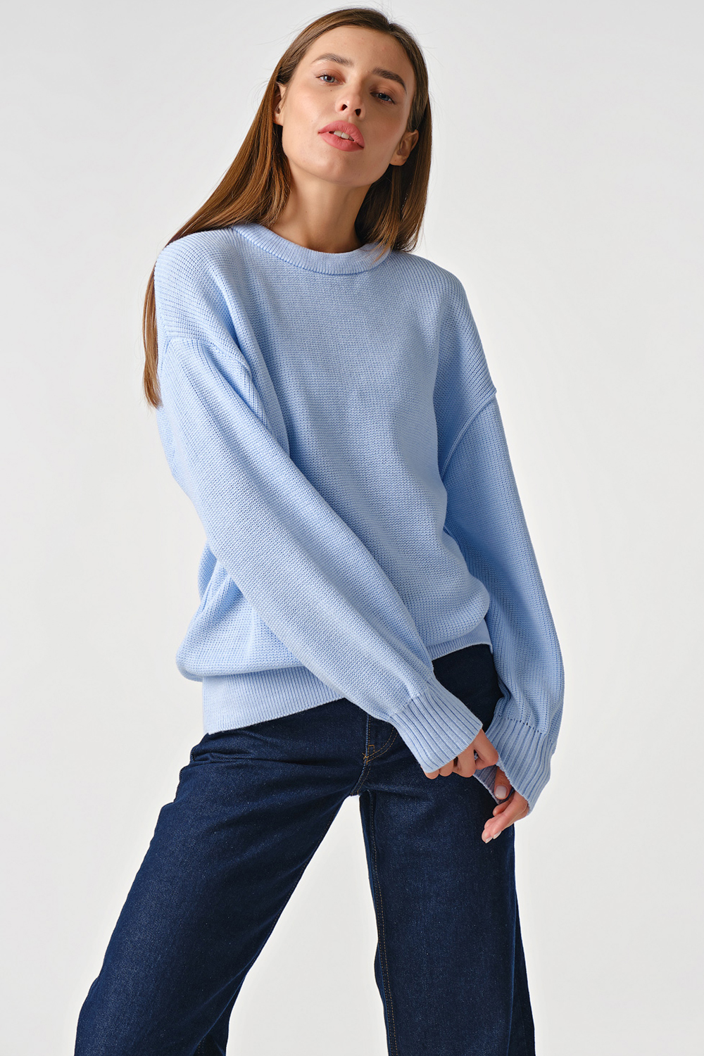 ст. цена1754руб.! Джемпер вязаный свободный из хлопка голубой