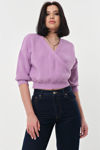 Особенности: Меланжевый джемпер выполнен из пряжи с хлопком, фактурным  способом. Низ изделия, рукава, воротник оформлены резинкой в рубчик.