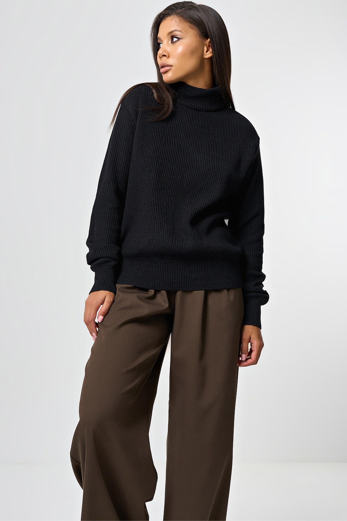 ст. цена1790руб.! Джемпер вязаный с хлопком в составе меланж черный