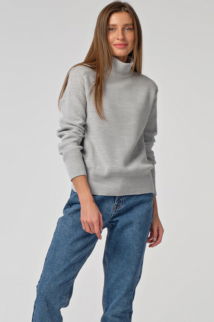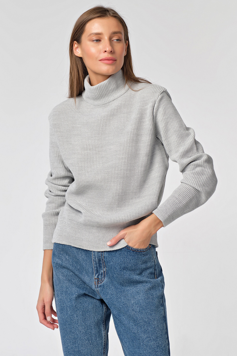 ст. цена1790руб.! Джемпер вязаный свободный из хлопка светло-серый