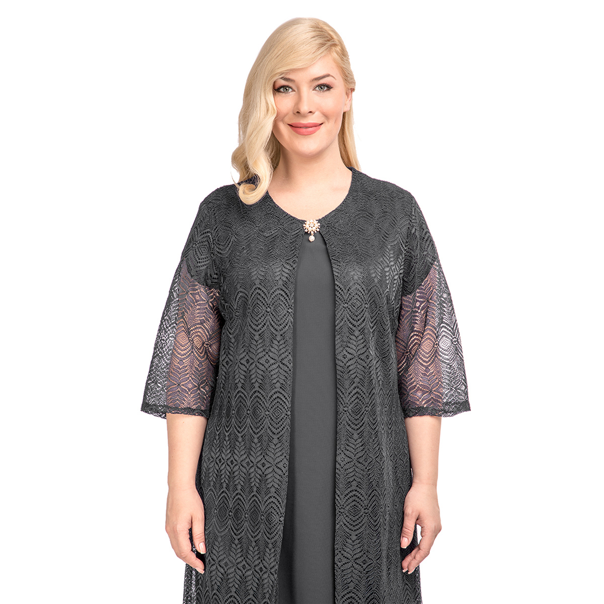 ст. цена1800руб.! Костюм, шифон, платье, кардиган, брошь, черный