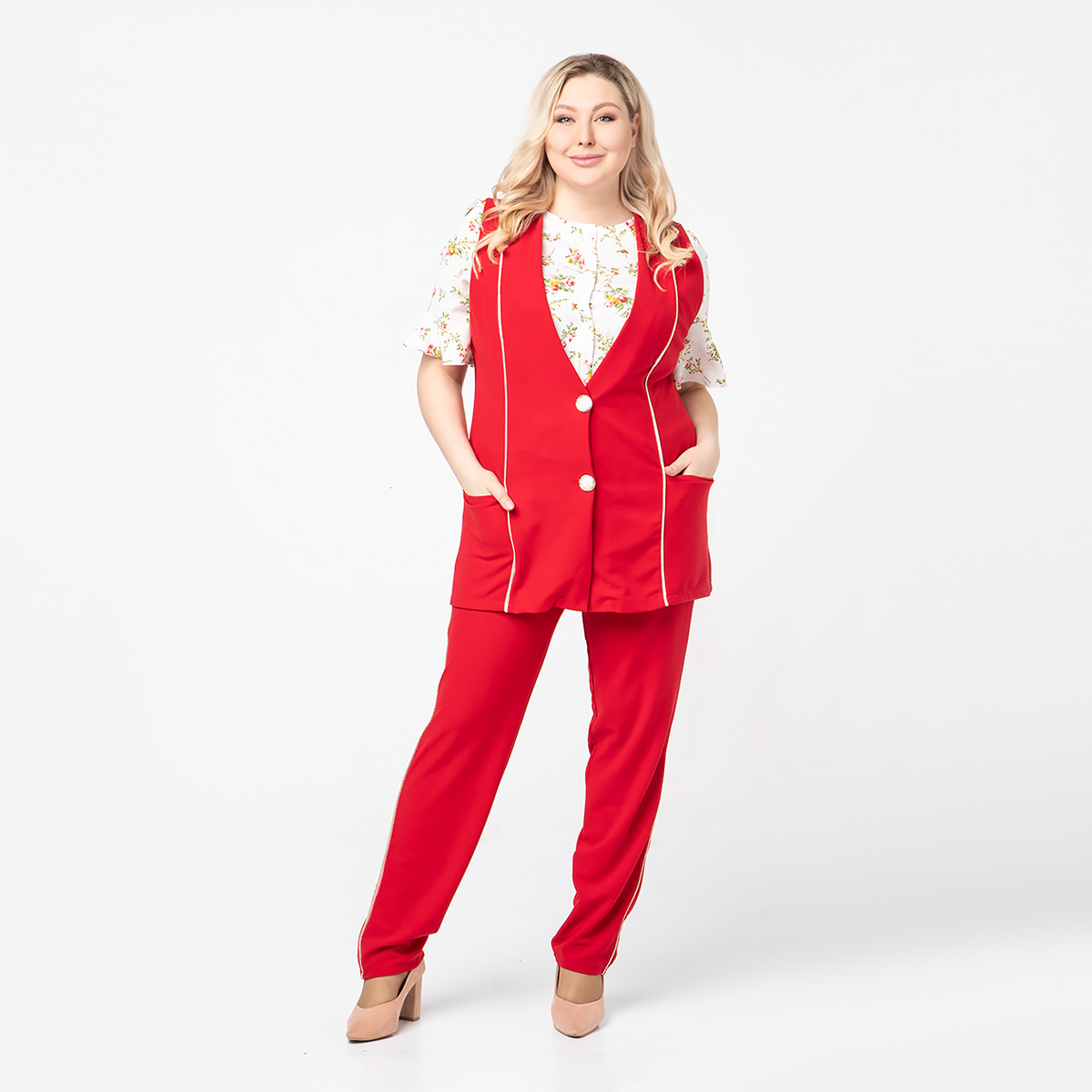 ст. цена1800руб.! Костюм, текстиль, жилет, брюки, красный