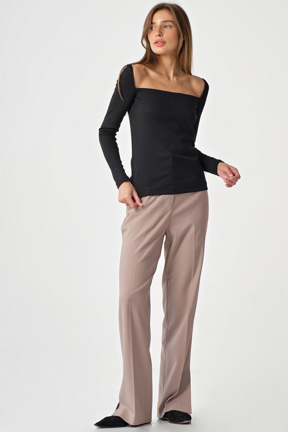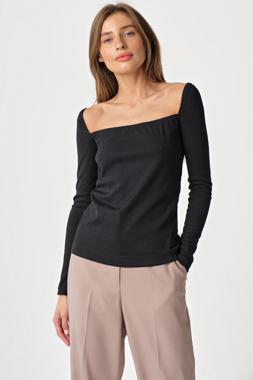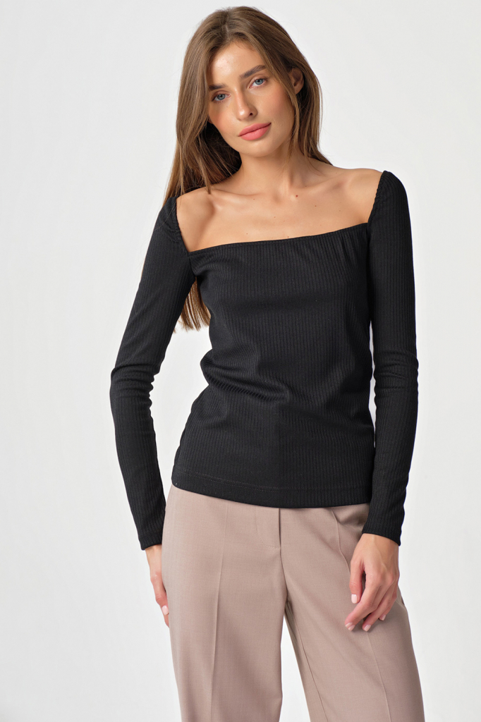 ст. цена1837руб.! Лонгслив трикотажный с квадратным вырезом черный
