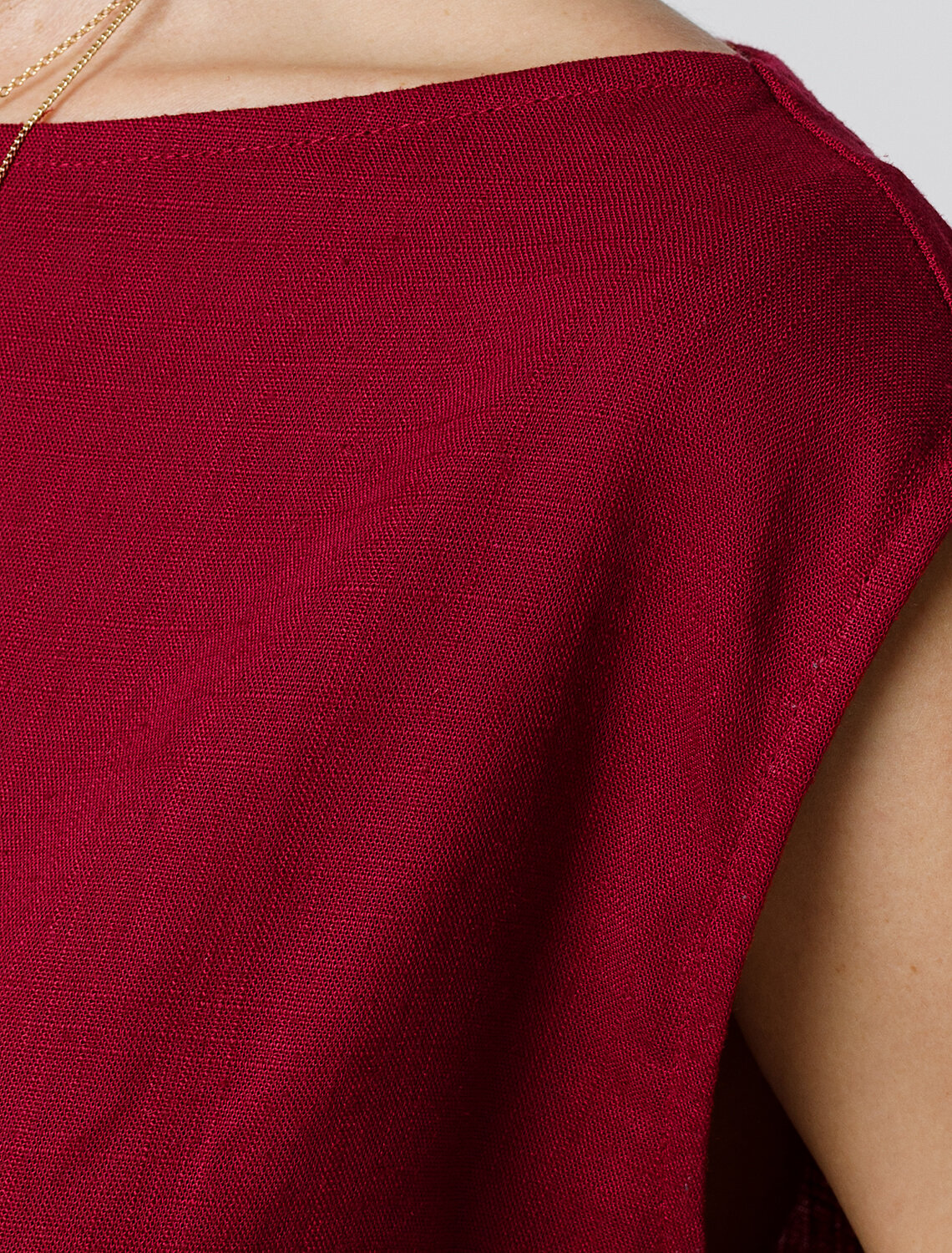 Лаконичный топ выполнен изо льна с вискозой. Изделие с горловиной формы лодочка, без застежек. Лён в составе обеспечивает прочность и воздухопроницаемость, вискоза эластичность и гладкость ткани. Благодаря такому сочетанию изделие хорошо драпируется, меньше мнется и сохраняет форму в течении долгого времени. Сочетается в костюме с брюками D24.222 и шортами D28.052