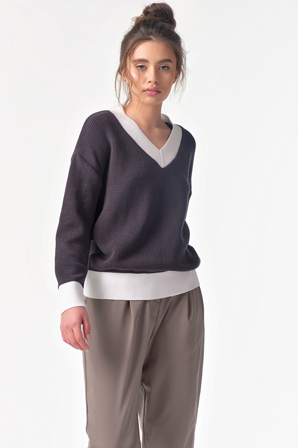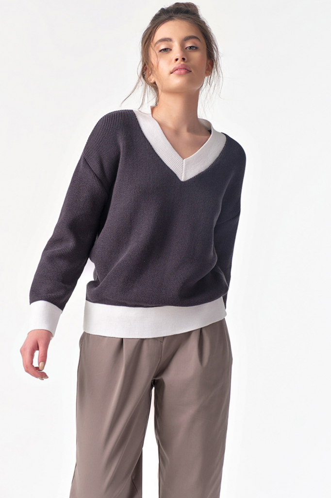 ст. цена1960руб.! Пуловер вязаный с v-вырезом графитовый