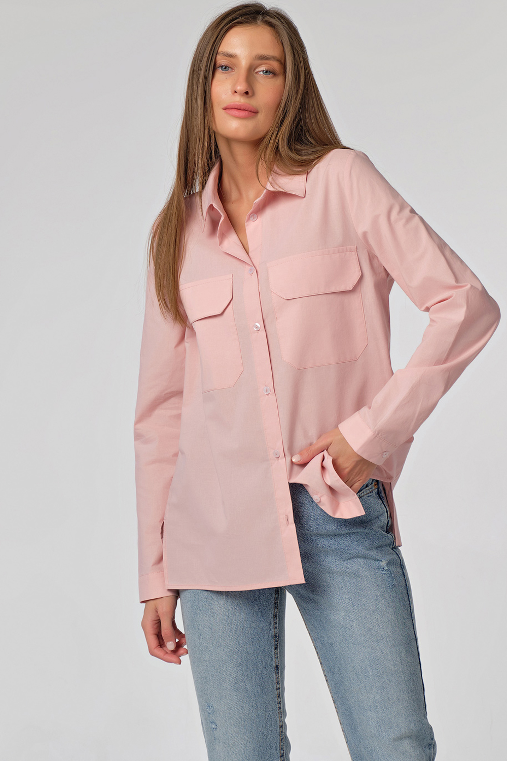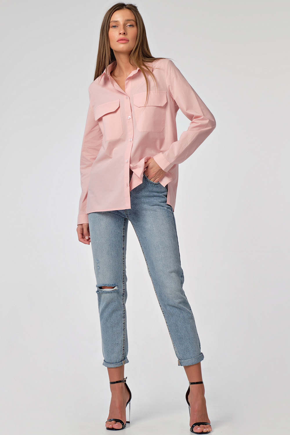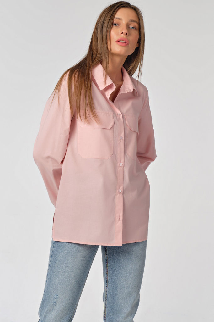 ст. цена1963руб.! Рубашка классическая прямая с длинным рукавом из хлопка розовая