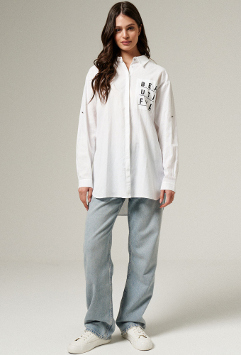 Классическая блузка из хлопковой ткани. Блузка полуприлегающего силуэта, с центральной застежкой на потайные петли и пуговицы и одну петлю и пуговицу на воротнике. Спинка с горизонтальной кокеткой и двумя небольшими складочками. Рукава рубашечные одношовные с притачными манжетами, застегивающимися на петлю и пуговицу. По швам притачивания манжет закладываются односторонние складочки. Разрезы рукавов обработаны английской планкой. Воротник сорочечный, с притачной стойкой.