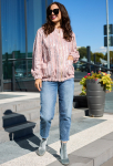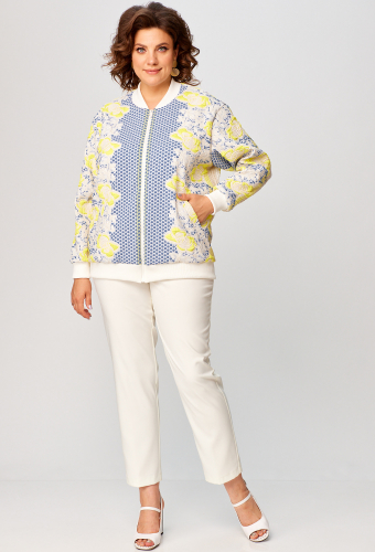 Жакет (бомбер) прямого силуэта. Полочка с центральной застежкой на молнию, отрезной плечевой кокеткой и карманами с листочками.