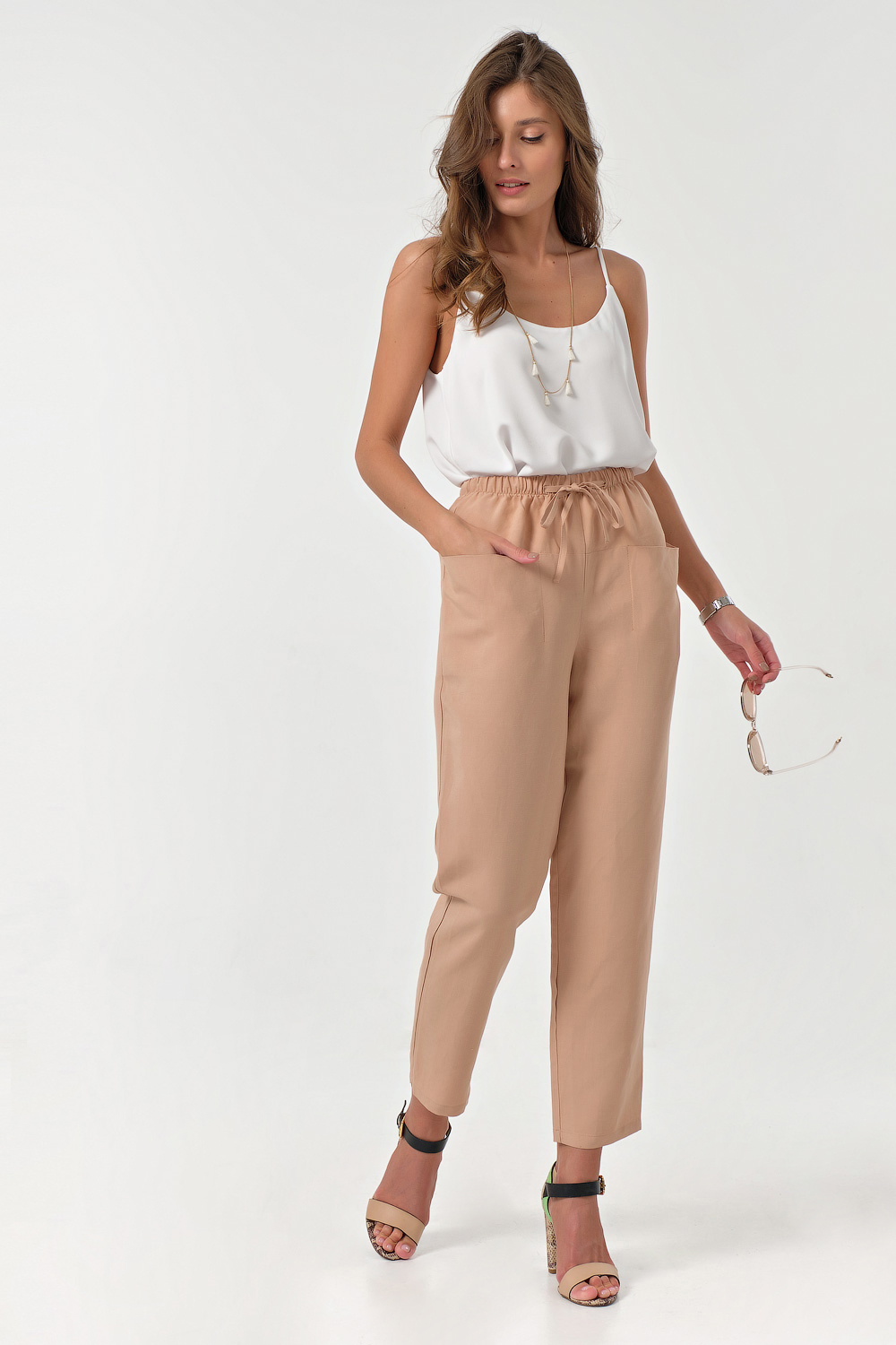 ст. цена2017руб.! Брюки летние зауженные к низу из хлопка бежевые