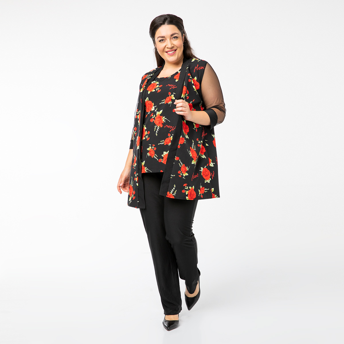 ст. цена2100руб.! Костюм, текстиль, кардиган, блуза, брюки, черный, красный
