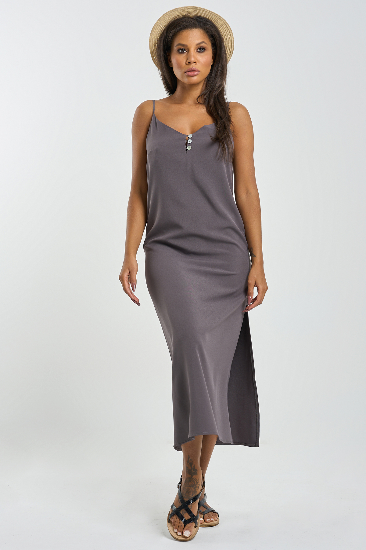 ст. цена2145руб.! Платье-комбинация с высоким разрезом серое