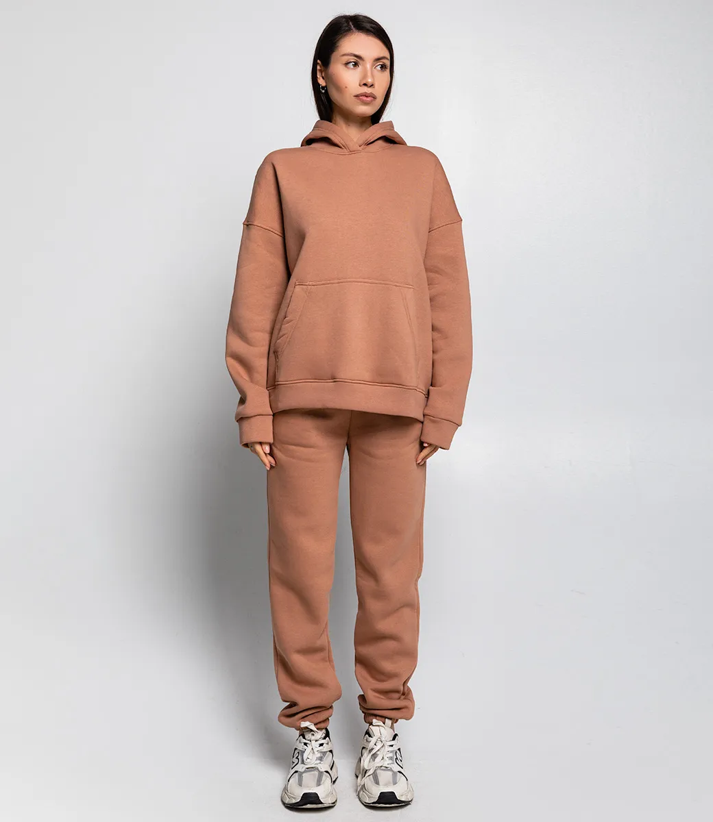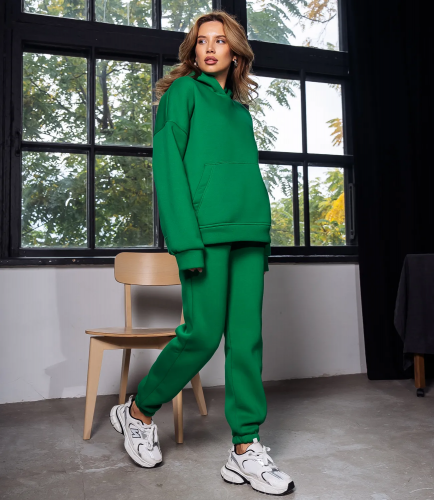 Теплый костюм на флисе с капюшоном и карманом "кенгуру" - это про стиль и комфорт. Теплая ткань и свободный покрой подходит для повседневной носки и любительницам спорта. Рост модели: 164, параметры: 83-61-89.