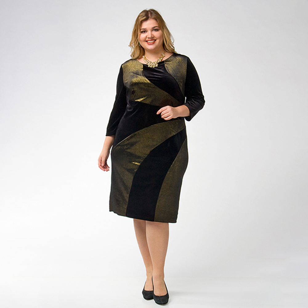 ст. цена2400руб.! Платье, трикотаж, черный, золотой