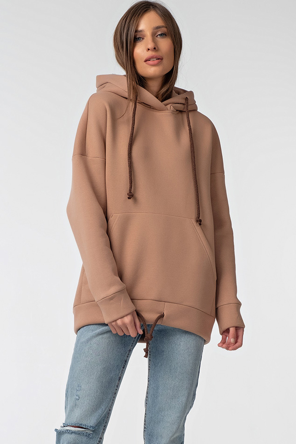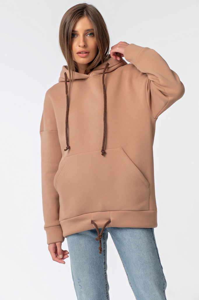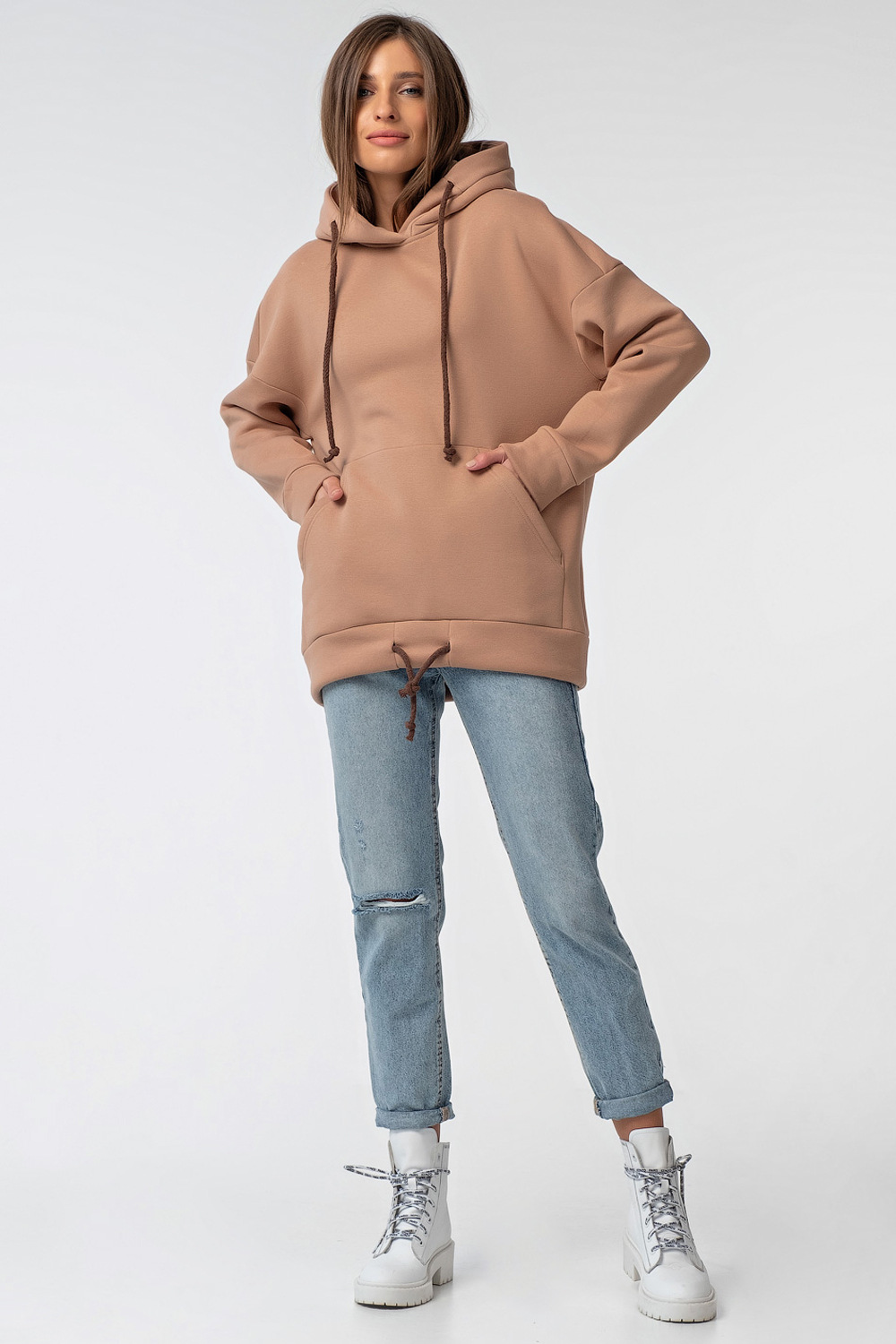 ст. цена2702руб.! Худи теплое оверсайз с капюшоном из футера бежевое