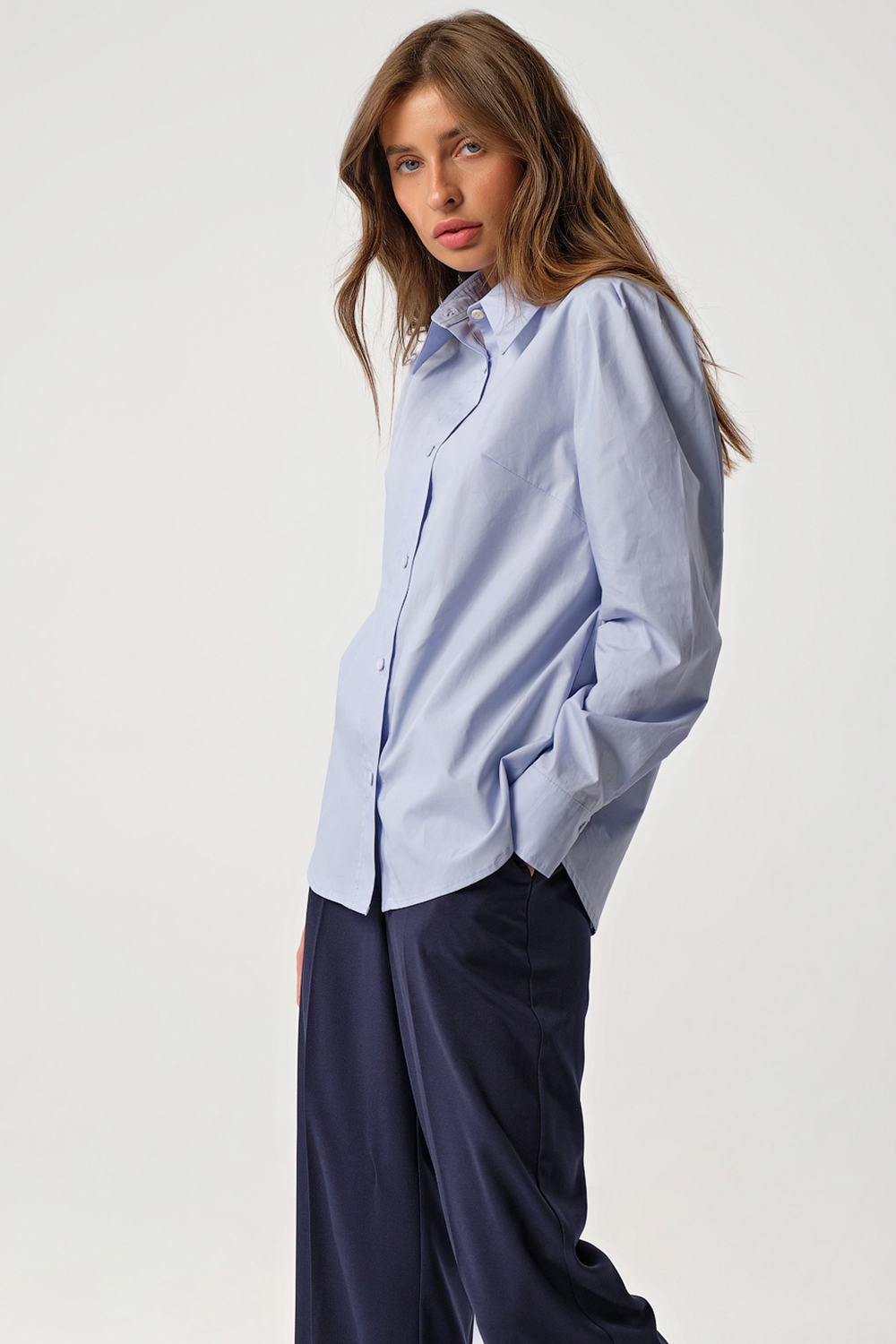 ст. цена2739руб.! Рубашка классическая прямая с длинным рукавом голубая