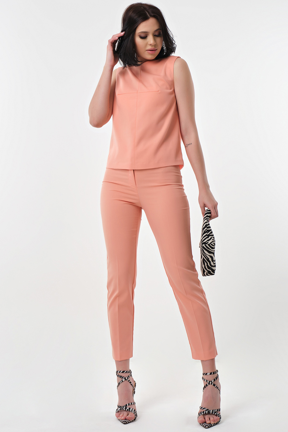 ст. цена2864руб.! Костюм летний брючный с топом персиковый