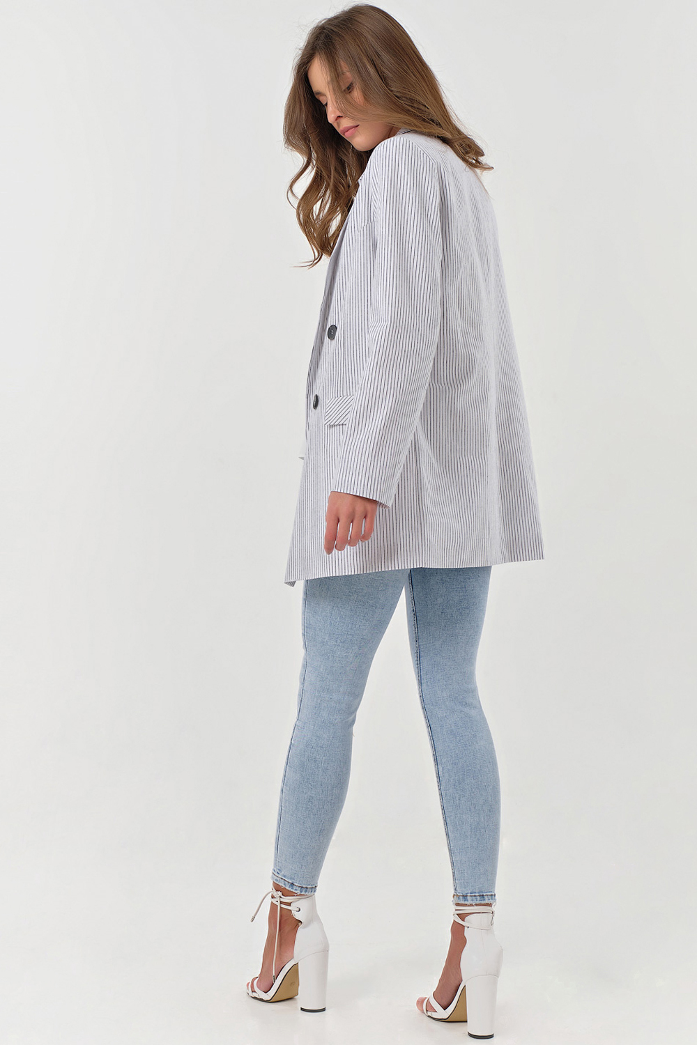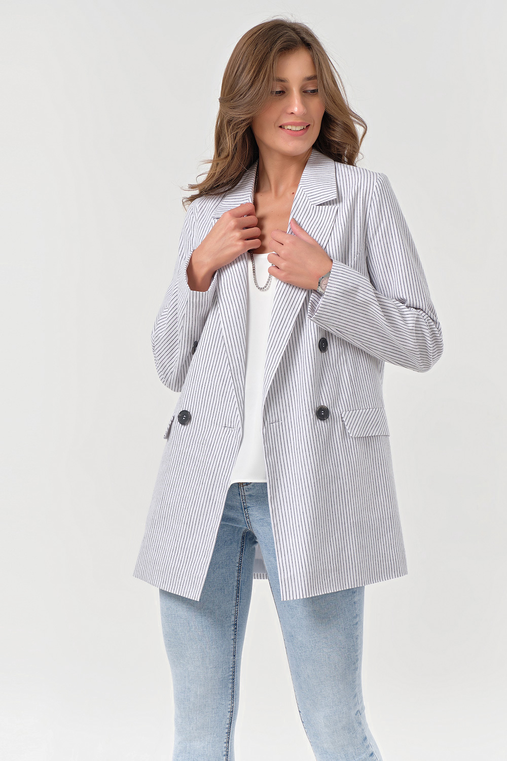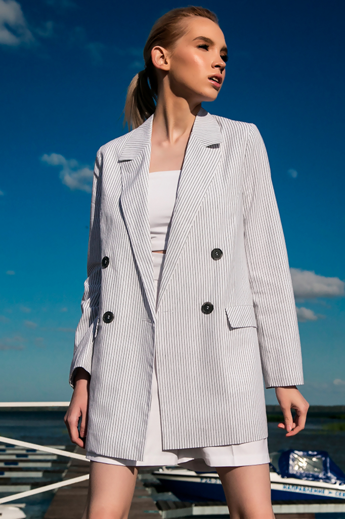 ст. цена3210руб.! Пиджак летний двубортный из хлопка в полоску белый