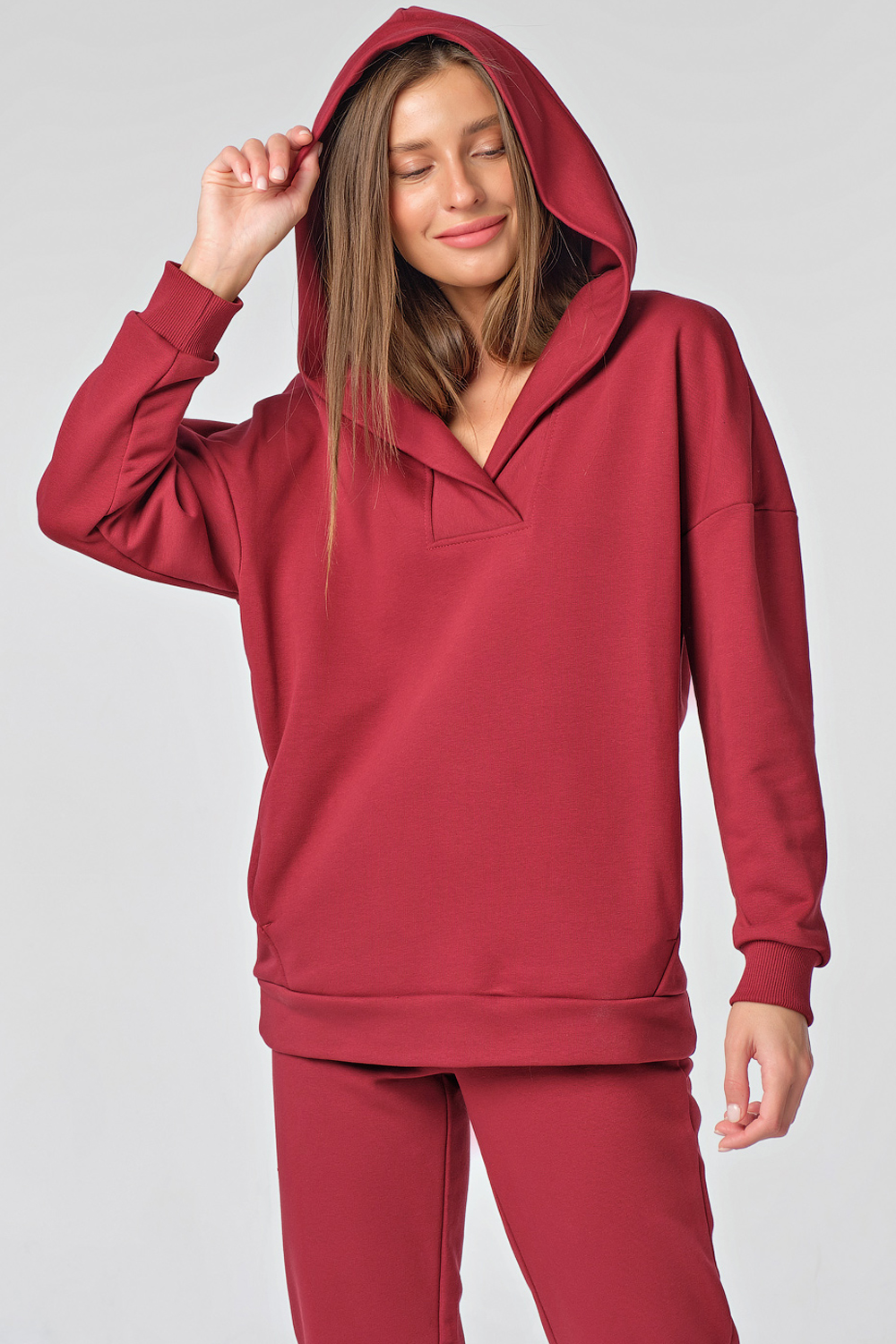 ст. цена3287руб.! Костюм спортивный трикотажный с капюшоном из хлопка бордовый