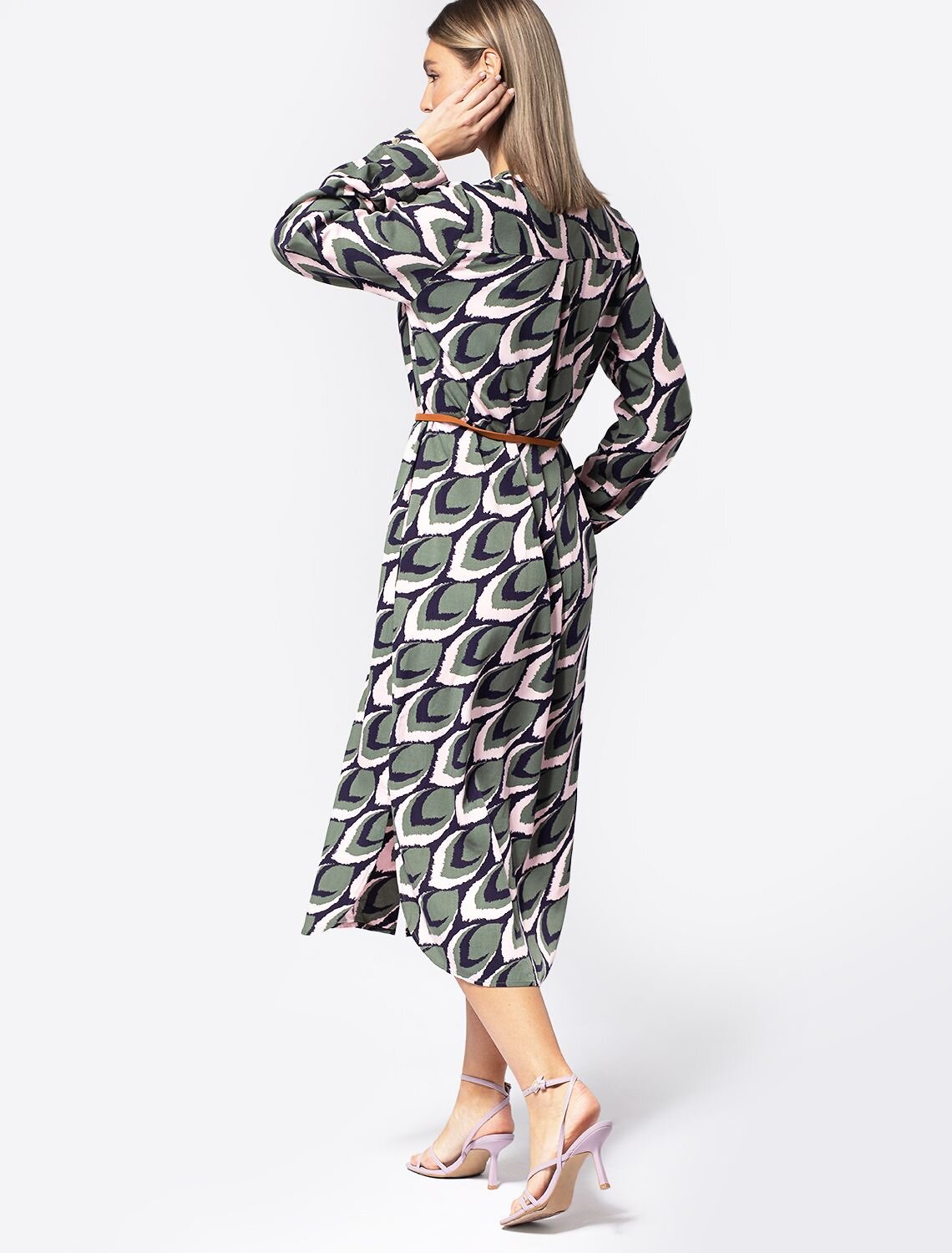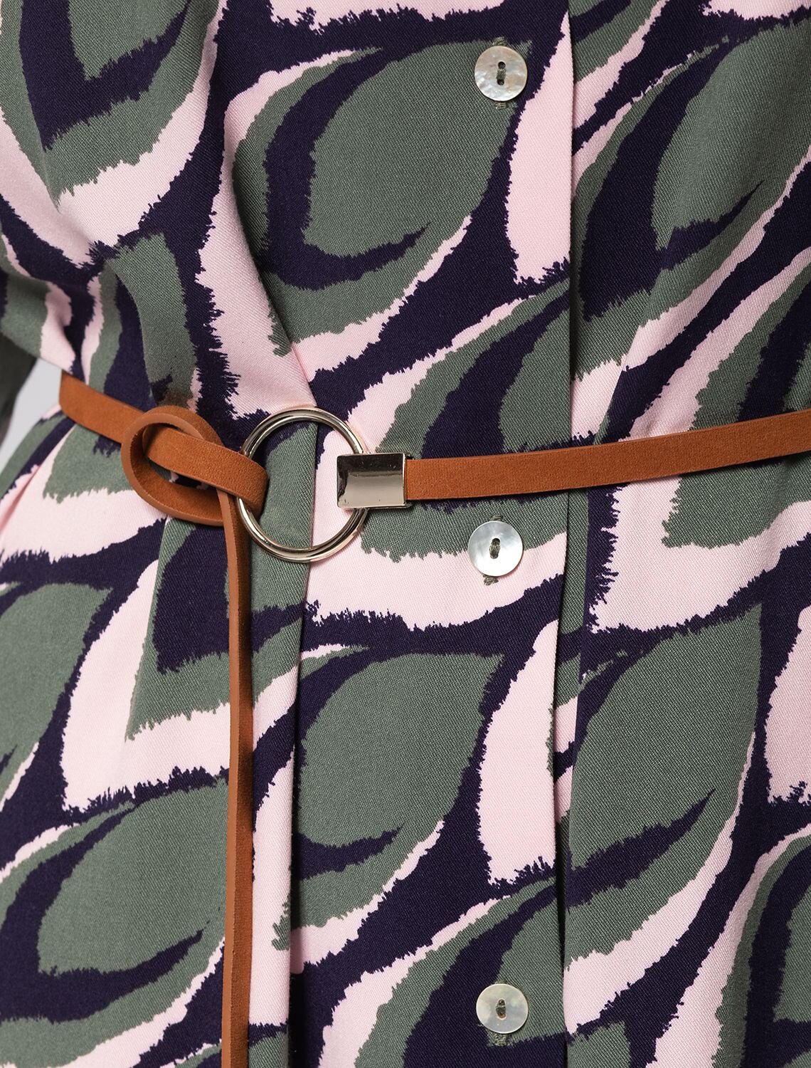 Платье выполнено из премиальной вискозы-твила. Модель с растительным принтом дополнена пуговицами из натурального перламутра. В комплект идет ремешок из эко-кожи. Шелковистая ткань на основе 100% вискозы приятно холодит кожу в жаркое время года. При этом платье с длинным рукавом подойдет на все сезоны. Сдержанная цветовая гамма впишется в как в базовый, так и в яркий трендовый гардероб.