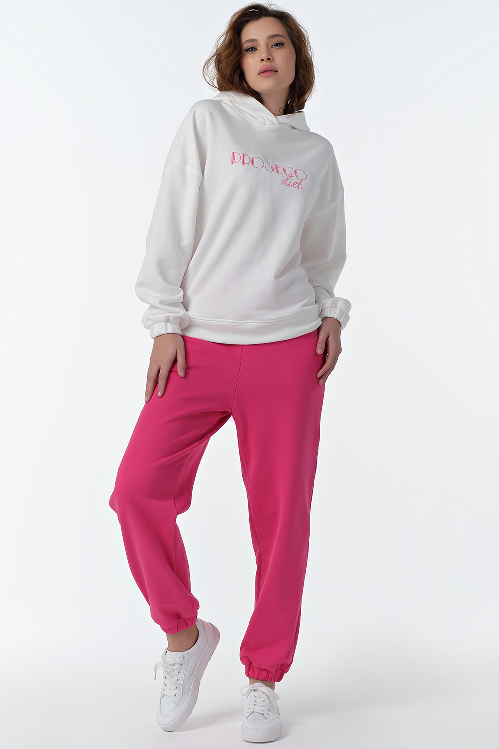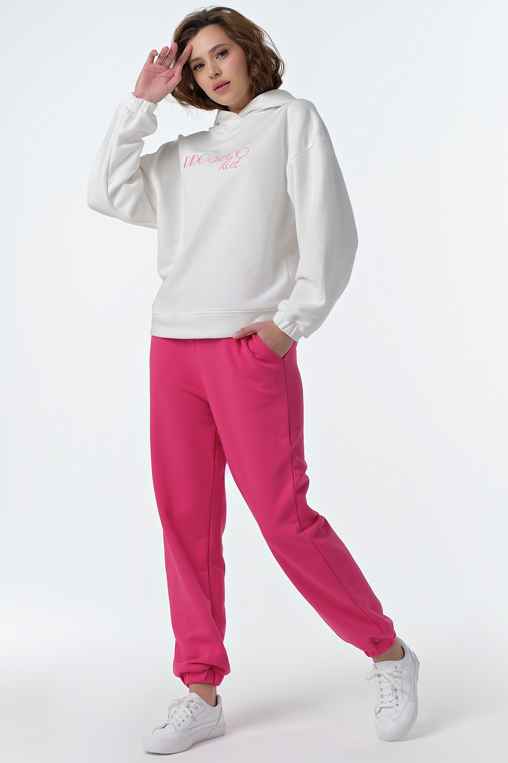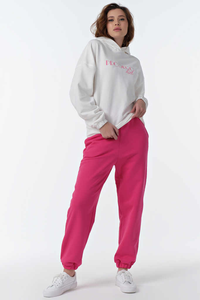 ст. цена4719руб.! Костюм спортивный трикотажный брючный с худи из хлопка бело-розовый