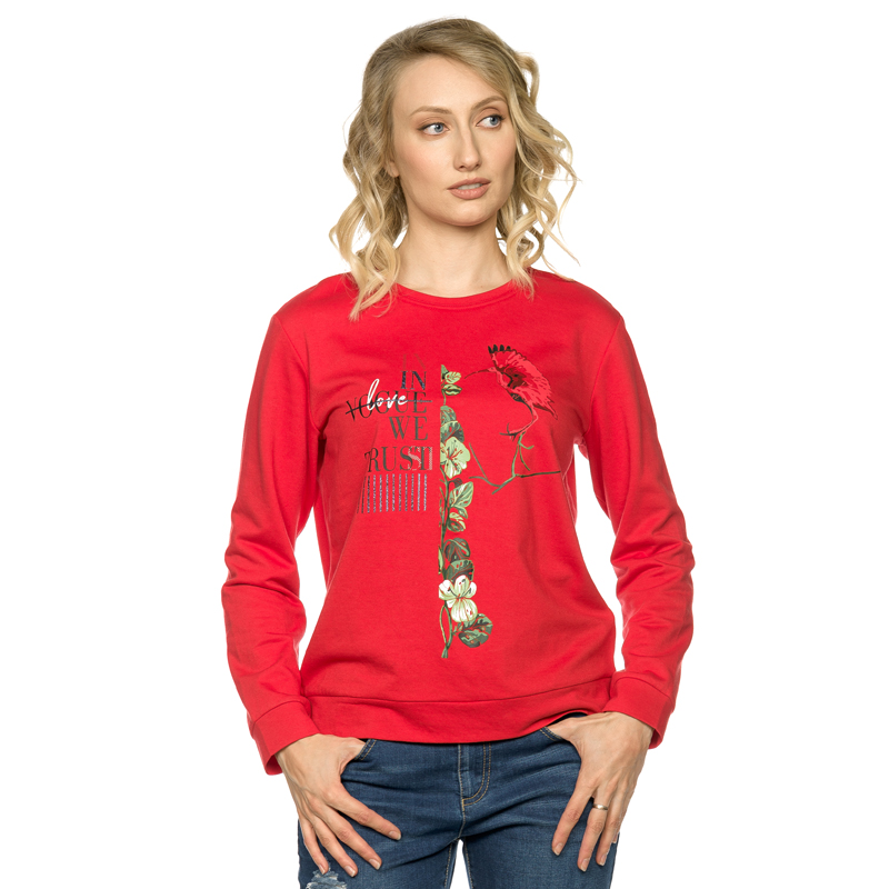 Состав: 65%полиэстер 35%хлопокОписание: Свитшот женский небольшого объема из пластичного футера с приспущенным плечом, рукавом комфортного объема, манжетами из основной ткани и стойким принтом с черным сахарным блеском в шрифте. Перевод Мы верим в любовь. Мы верим в моду.