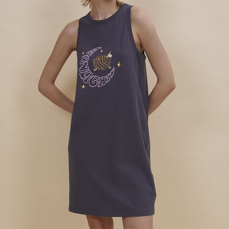 Состав: 95%хлопок 5%эластанОписание: Стильное женское летнее платье майка длиной до колена. Женское трикотажное платье свободного прямого кроя. Однотонное платье-майка с принтом – базовый элемент женского гардероба. Повседневное платье свободного кроя подойдет для любой фигуры. Проймы "а-ля американка" – один из актуальных летних трендов. В составе ткани изделия преобладает высококачественный хлопок – платье мягкое и отлично пропускает воздух, позволяя коже дышать. Эластан помогает модели надолго сохранить первоначальную форму. Милый принт в виде забавного барашка, надпись в виде месяца переводится "Лунный свет". Принт эластичный и мягкий, отлично переносит частые стирки. В линейке представлены следующие размеры: XS (42), S (44), M (46), L (48), XL (50). Платье в спортивном стиле подходит как женщинам, так и девушкам, девочкам-подросткам. Модель выполнена в тёмно-синем цвете. Свободное платье идеально для носки дома, комфортного сна, пижамной вечеринки. Платье-майка подходит для повседневного летнего гардероба, прогулок, отдыха, пляжа. А также модель удобна для беременных. Женское платье майка – чудесный подарок для мамы, сестры или подруги на любой праздник. Выбирайте нужный размер по таблице размеров на фото. Цвет товара на экране вашего устройства может отличаться от цвета изделия вживую.