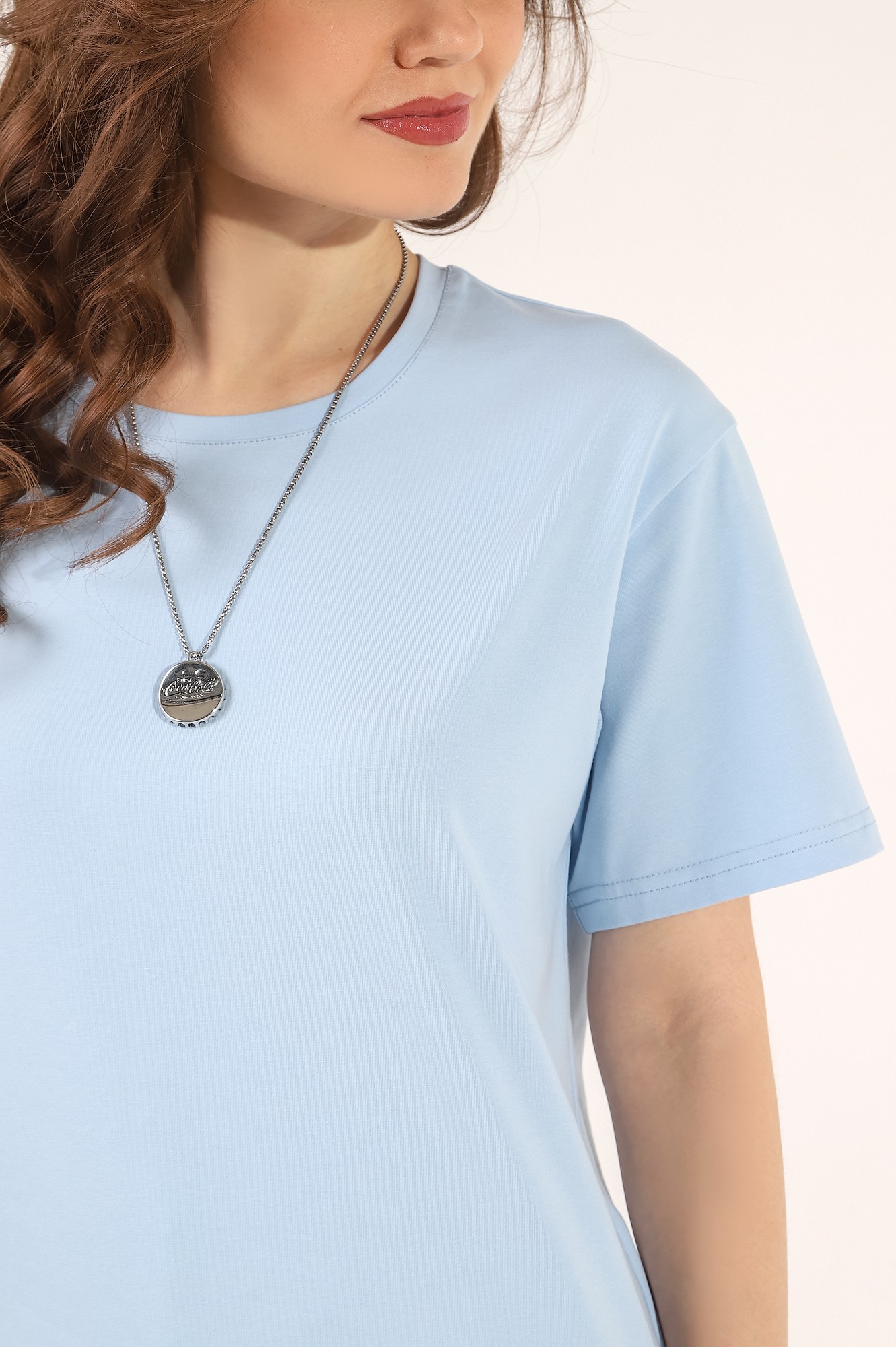 Футболка из гладкокрашеного трикотажного полотна «кулирка с лайкрой», классического покроя, с короткими втачными рукавами, горловиной овальной формы, обработанной втачной планкой.