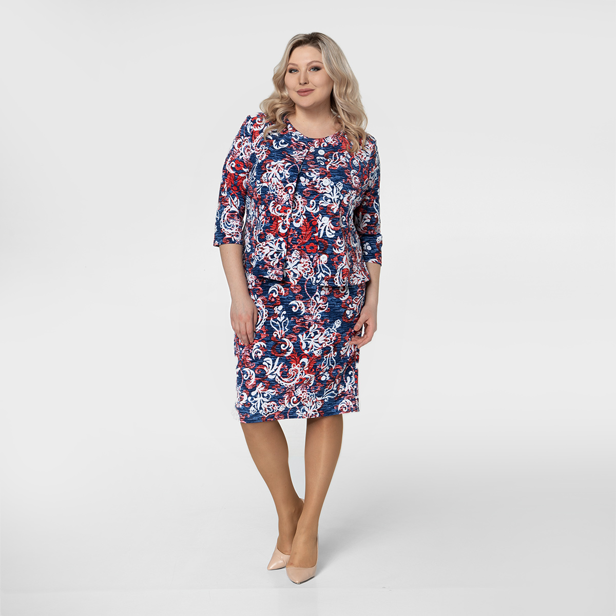 ст. цена1400руб.! Комплект, трикотаж, жакет, платье, красный