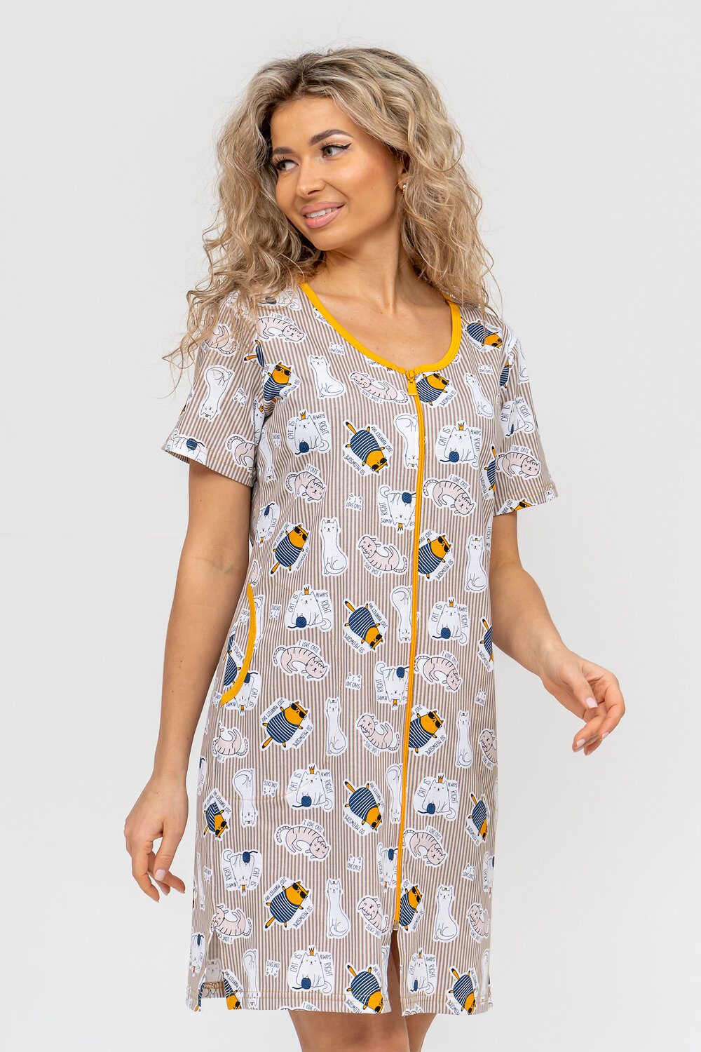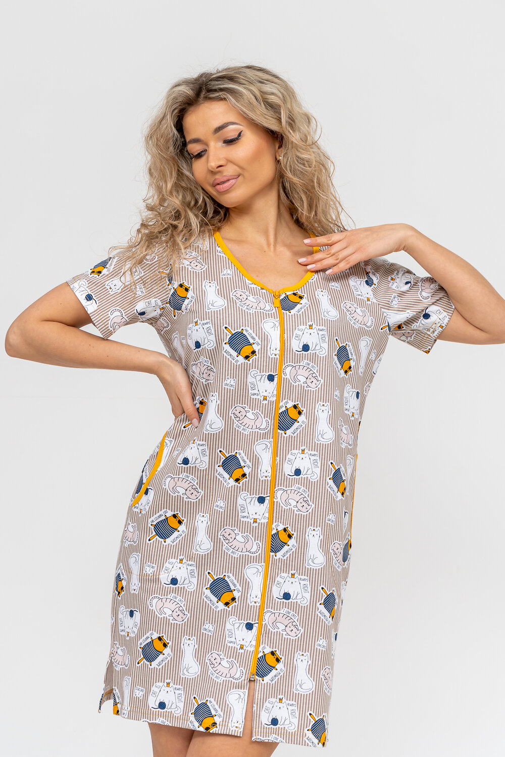 Женский халатик модных трендовых расцветок выполнен из 100% хлопчатобумажной ткани, что обеспечивает максимальный комфорт при ношении. Отличается мягкостью и приятной на ощупь текстурой. Материал прекрасно дышит. Носить такой халатик Вы сможете как летом, так и в любой другой сезон. Надёжный замок на молнии сохраняет свои свойства в течении всего времени использования. Женственный вырез и 2 боковых кармана добавляют образу шарм и делают изделие удобным и практичным. Изысканный, средней длины халатик подойдёт для любого типа фигуры. Отличная модель для дома, для роддома, после родов, для кухонных дел и хозяйственной уборки, для дачи. И конечно идеально после душа, сауны, бани и ванной. А так же будет замечательным подарком на любой праздник: 14 февраля, день рождения, 8 марта. Рекомендуется стирать в деликатном режиме 30 С. Это поможет избежать деформации и сохранить яркость цвета.