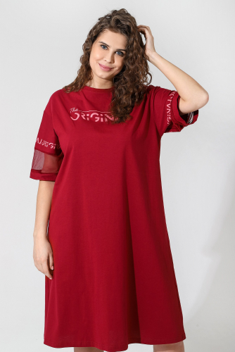 * Маркировка "Честный ЗНАК". Туника женская из гладкокрашеного полотна «кулирка» с отделочными вставками на рукавах из материала «сетка», прямого силуэта слегка расширенная к низу. Горловина овальной формы обработана притачной бейкой из основного материала, на рукавах - вставка из « сетки», манжеты. На полочке и рукавах печать, выполненная в технике «шелкография».