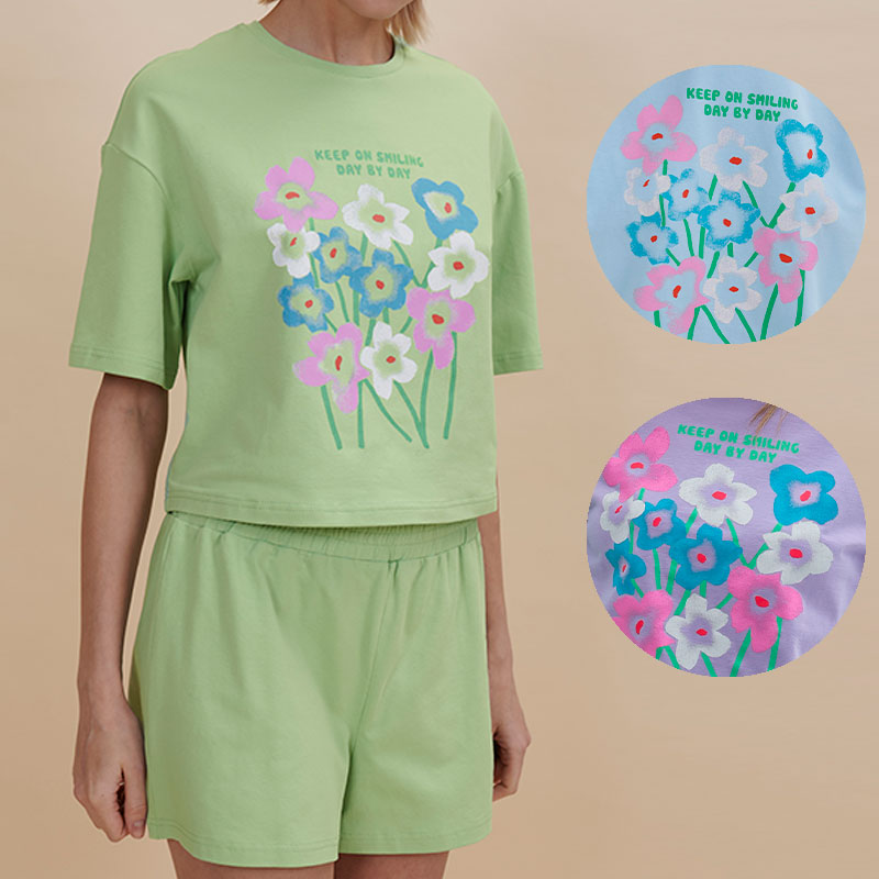Состав: верх: 92%хлопок 8%эластан, низ: 92%хлопок 8%эластанОписание: Домашний комплект женский с шортами и футболкой – комфортная повседневная одежда для дома. Домашняя одежда всегда должна быть изысканной, создавать чувство уверенности и красоты. Кроп-топ модного дизайна дарит комфорт и свободу движений. Короткая майка-футболка с позитивным принтом – стильная деталь женского гардероба. Милый цветочный принт с летним настроением, надпись переводится: "Продолжай улыбаться изо дня в день". Принт эластичный и мягкий, отлично переносит многочисленные стирки. В составе ткани изделия преобладает высококачественный хлопок – пижама мягкая и отлично пропускает воздух, давая коже дышать. Шорты свободного кроя, средней длины – для удобства и комфорта. Шортики женские на широкой эластичной резинке – она не давит и не перекручивается. В линейке представлены следующие размеры: XS (42), S (44), M (46), L (48), XL (50). Женский пижамный костюм подходит как женщинам, так и девушкам, девочкам-подросткам. Модель представлена в трёх актуальных цветах: голубом, зелёном и сиреневом (модный оттенок лаванды). Комплект женский домашний идеален для комфортного сна, пижамной вечеринки. Кроп-топ свободного кроя подходит для повседневного летнего гардероба, прогулок, отдыха. А также пижама хлопковая женская удобна для беременных и кормящих. Домашний женский комплект из футболки и шорт – чудесный подарок для мамы, сестры или подруги на любой праздник. Выбирайте нужный размер по таблице размеров на фото. Цвет товара на экране вашего устройства может отличаться от цвета изделия вживую.