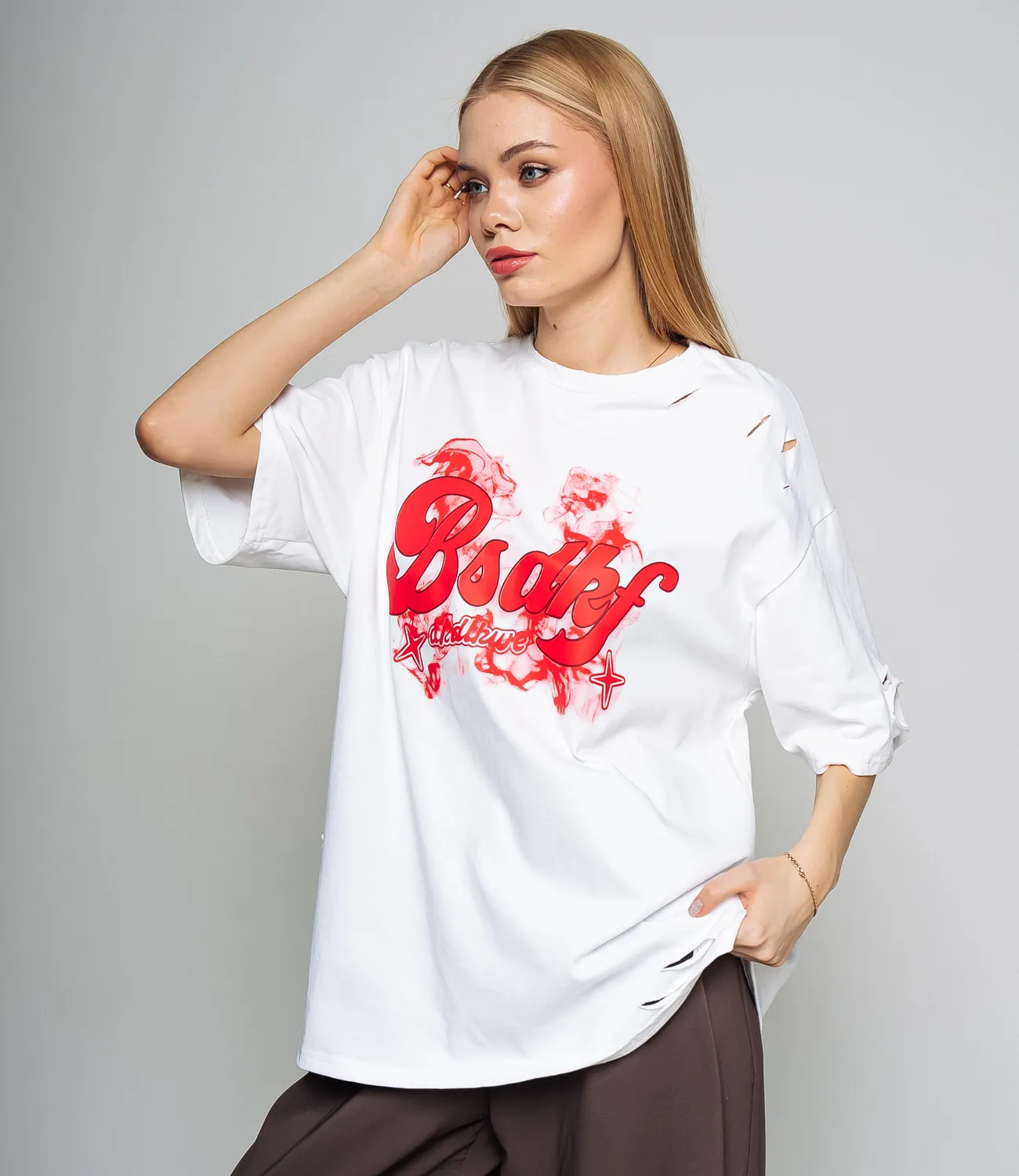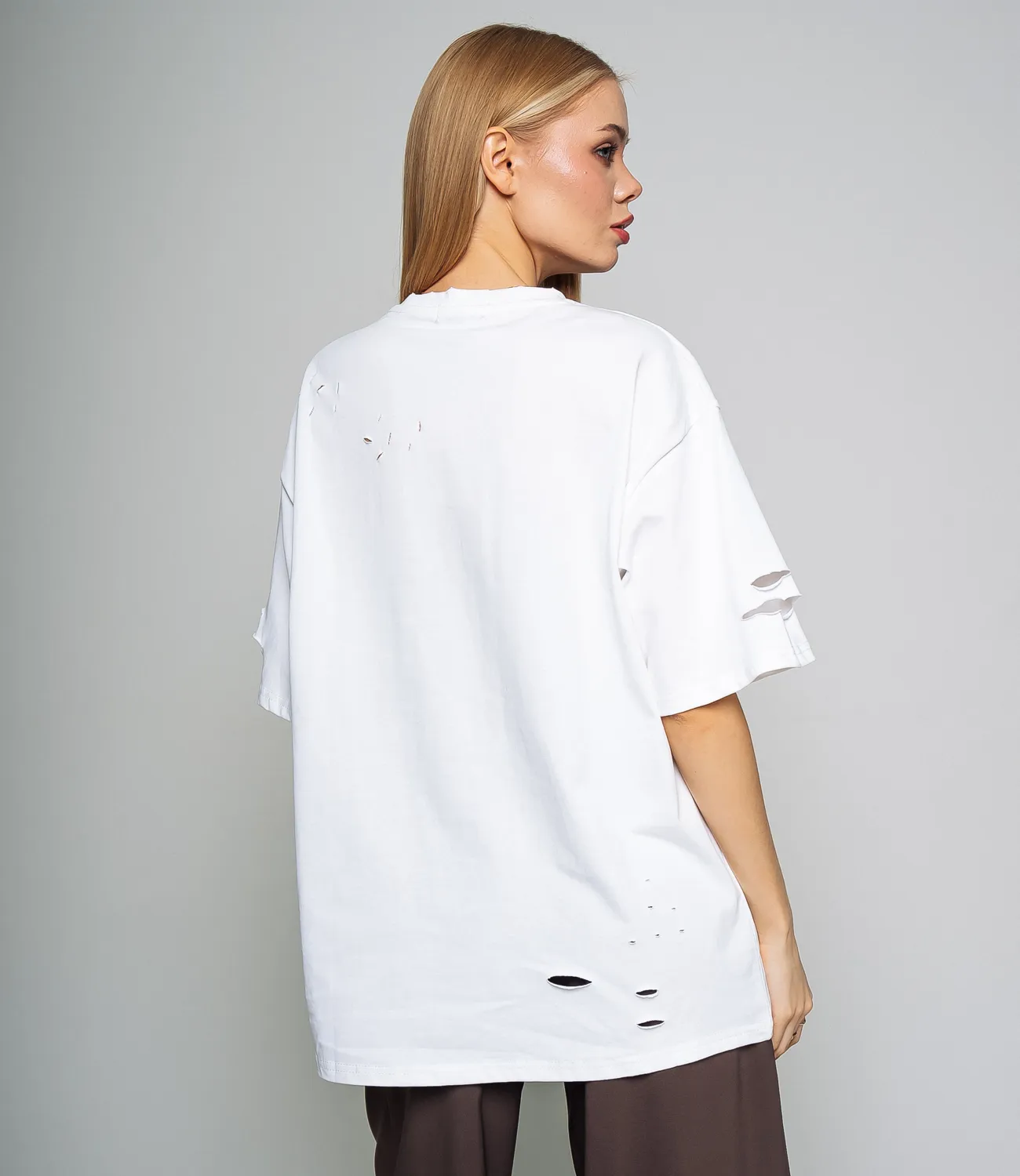 Удлиненная футболка свободного кроя, которая подарит образу комфорт и свободу движения.