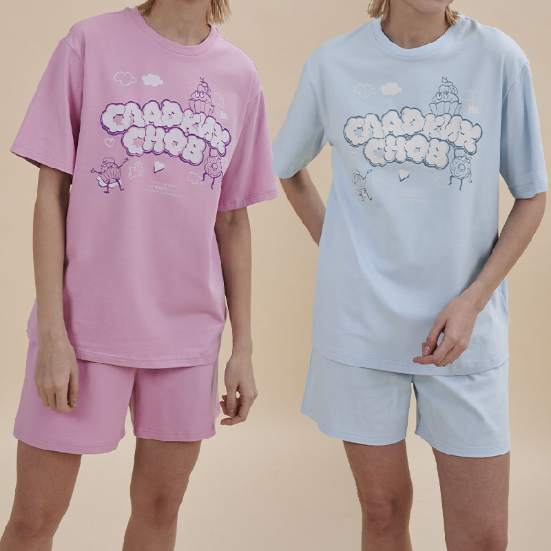 Состав: верх: 92%хлопок 8%эластан, низ: 92%хлопок 8%эластанОписание: Домашний комплект женский с шортами и футболкой – комфортная повседневная одежда для дома. Домашняя одежда всегда должна быть изысканной, создавать чувство уверенности и красоты. Удобная футболка среднего объёма дарит комфорт и свободу движений. Модная майка-футболка с позитивным принтом – стильная деталь женского гардероба. Милый принт в виде сладостей с надписью актуальным шрифтом, напоминающим облака: "Сладких снов". Принт эластичный и мягкий, отлично переносит частые стирки. В составе ткани изделия преобладает высококачественный хлопок – пижама мягкая и отлично пропускает воздух, позволяя коже дышать. Шорты свободного кроя, средней длины – для удобства и комфорта. Шортики женские на широкой эластичной резинке – она не давит и не перекручивается. В линейке представлены следующие размеры: XS (42), S (44), M (46), L (48), XL (50). Женский пижамный костюм подходит как женщинам, так и девушкам, девочкам-подросткам. Модель представлена в двух трендовых цветах: голубом и розовом. Комплект женский домашний идеален для комфортного сна, пижамной вечеринки. Футболка среднего объёма подходит для повседневного летнего гардероба, прогулок, отдыха. А также пижама хлопковая женская удобна для беременных и кормящих. Домашний женский комплект из футболки и шорт – чудесный подарок для мамы, сестры или подруги на любой праздник. Выбирайте нужный размер по таблице размеров на фото. Цвет товара на экране вашего устройства может отличаться от цвета изделия вживую.
