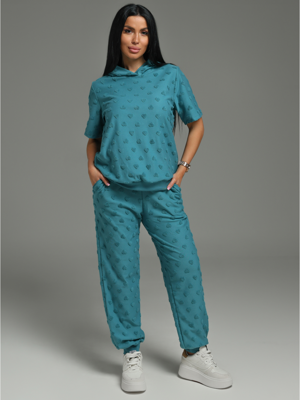 Суфле костюм женский (махра петроль сердечки)