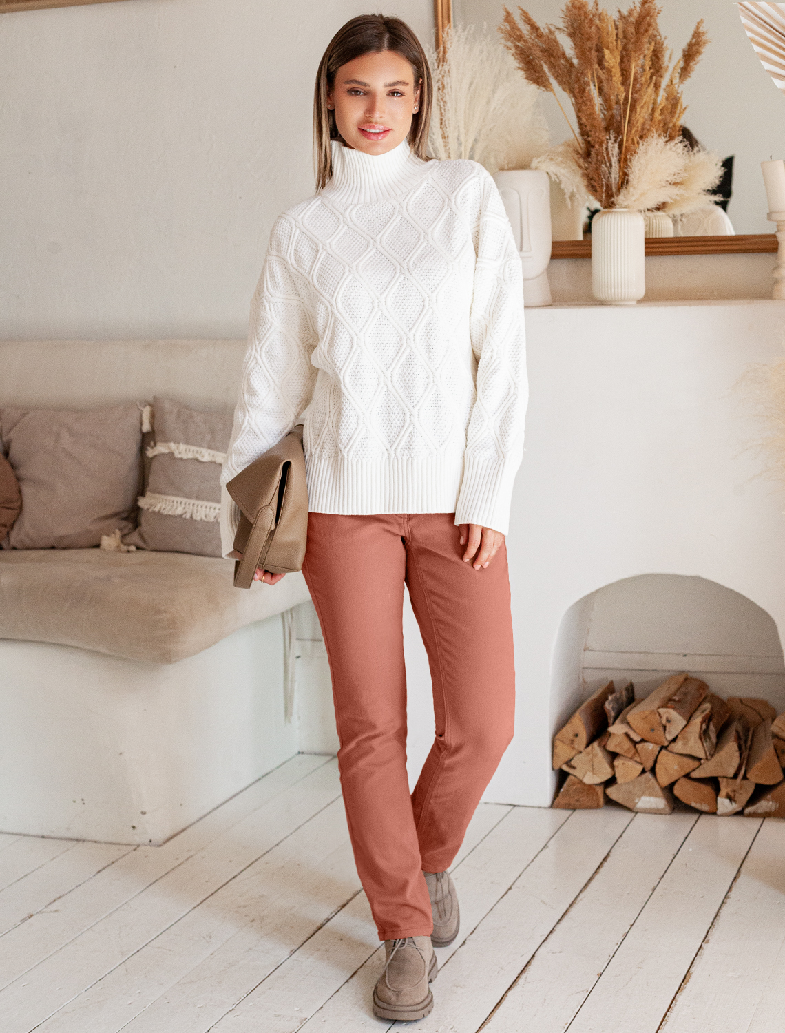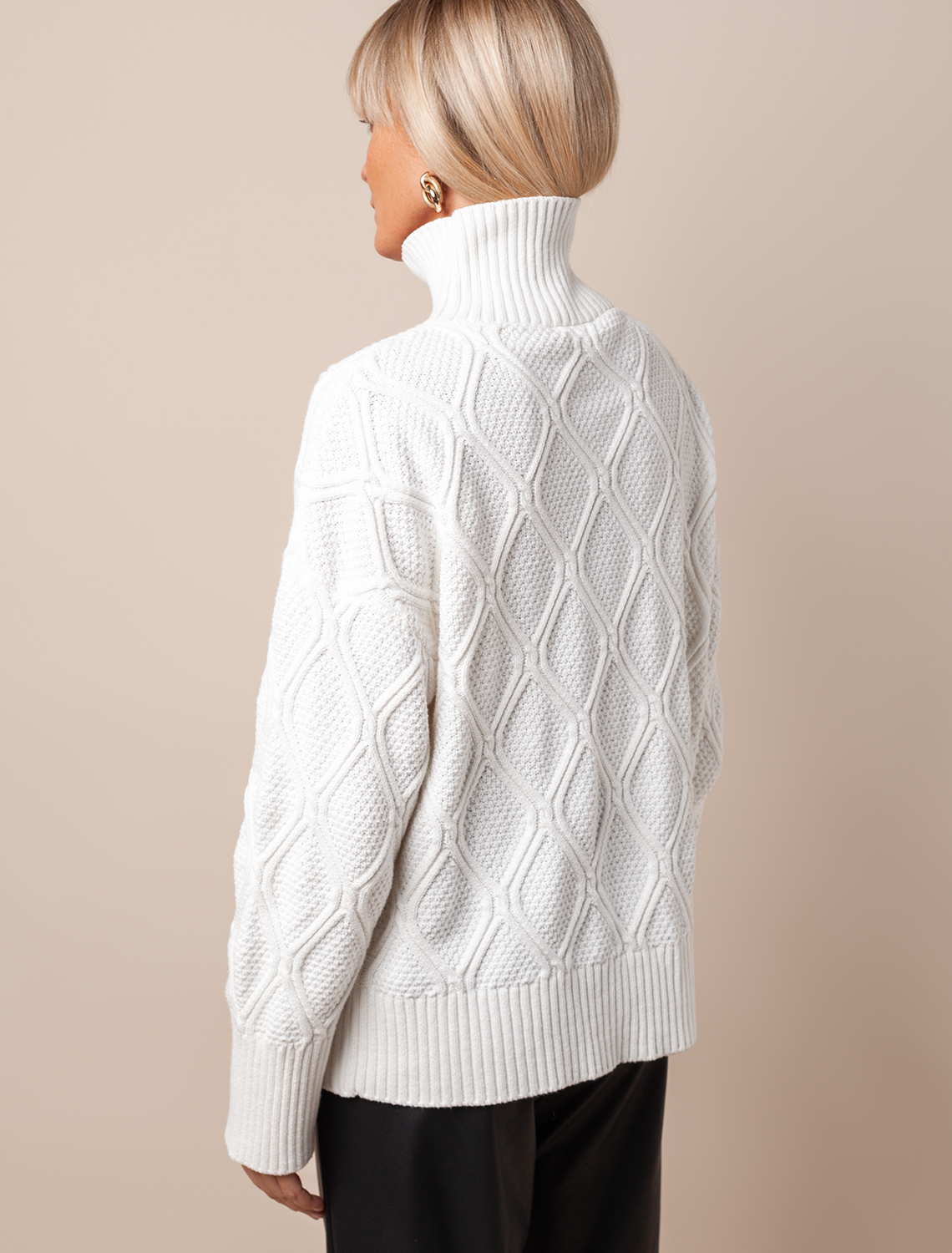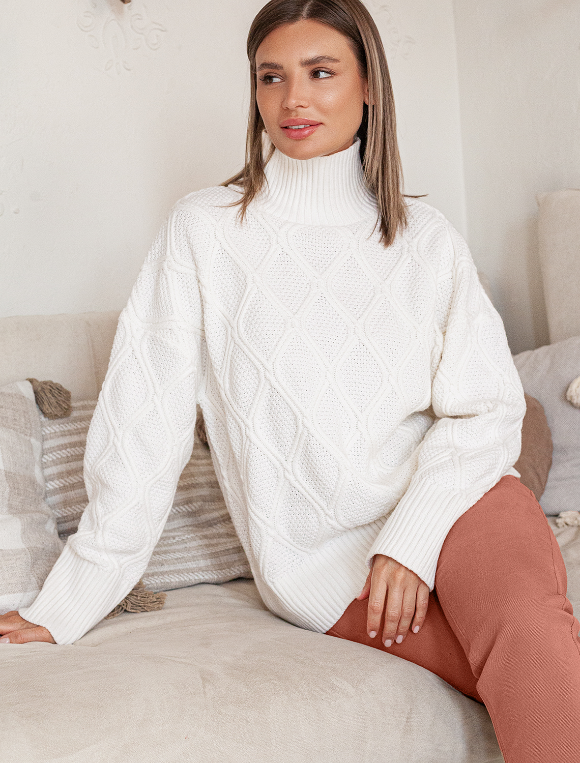 Свитер из мягкой пряжи крупной резной вязки D34.183 белый