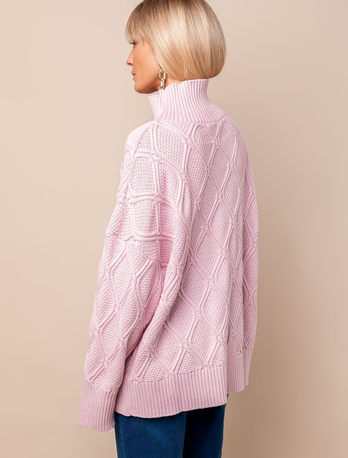Свитер из мягкой пряжи крупной резной вязки D34.183 нежно-лиловый
