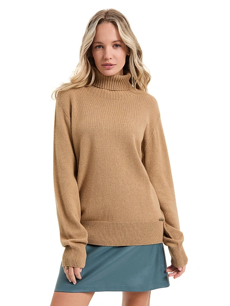 Особенности: Бесшовная вязка, Высокий ворот, Модель oversize со свободной посадкой, Широкая резинка снизу изделия, Эластичные резинки на манжетах