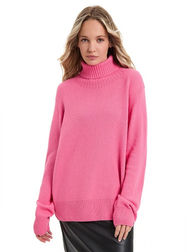 Особенности: Бесшовная вязка, Высокий ворот, Модель oversize со свободной посадкой, Широкая резинка снизу изделия, Эластичные резинки на манжетах