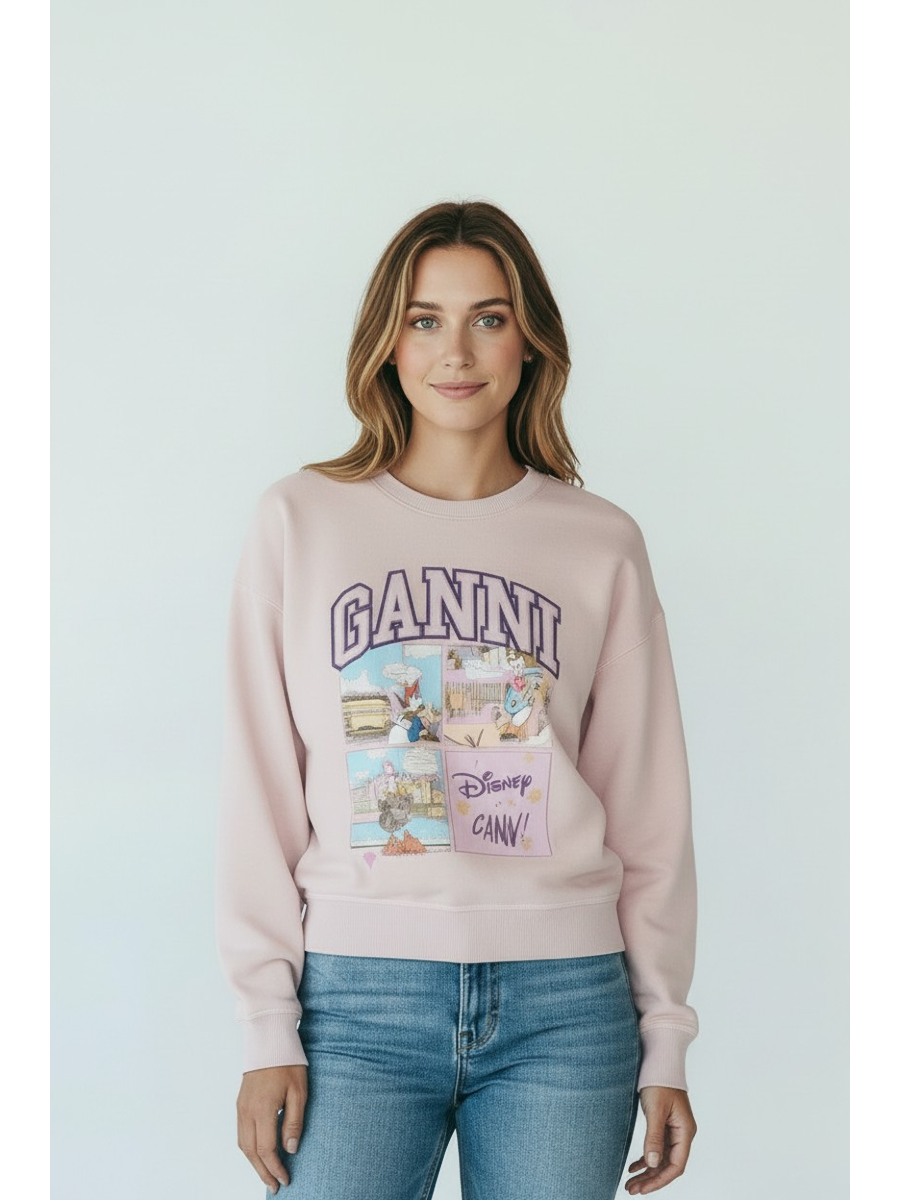 Эта толстовка «G*NNI x Disney» имеет круглый вырез, длинные рукава с ребристыми манжетами и цифровой принт из комикса о Дейзи Дак.