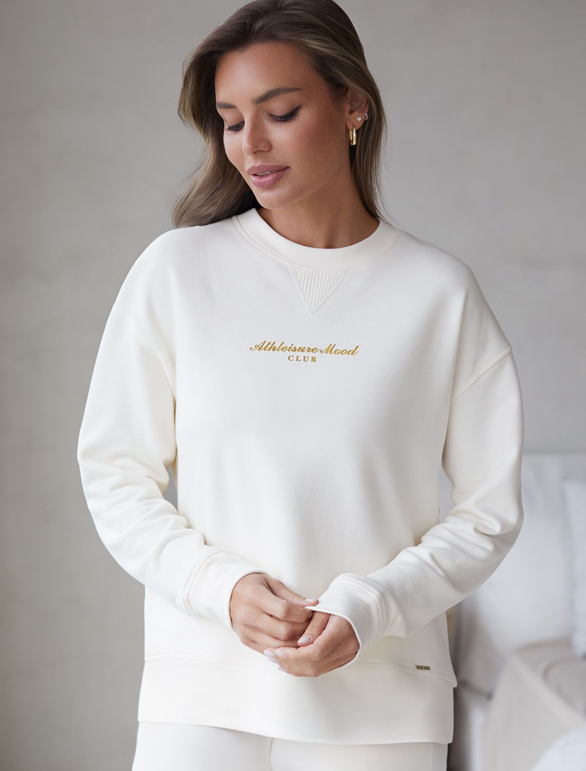 Базовый джемпер комфортен для дома, спортивных или повседневных образов в комплекте с брюками нашего бренда, а также станет отличным выбором для работы в офисе в сочетании с классическими брюками. молочный_athleisure mood