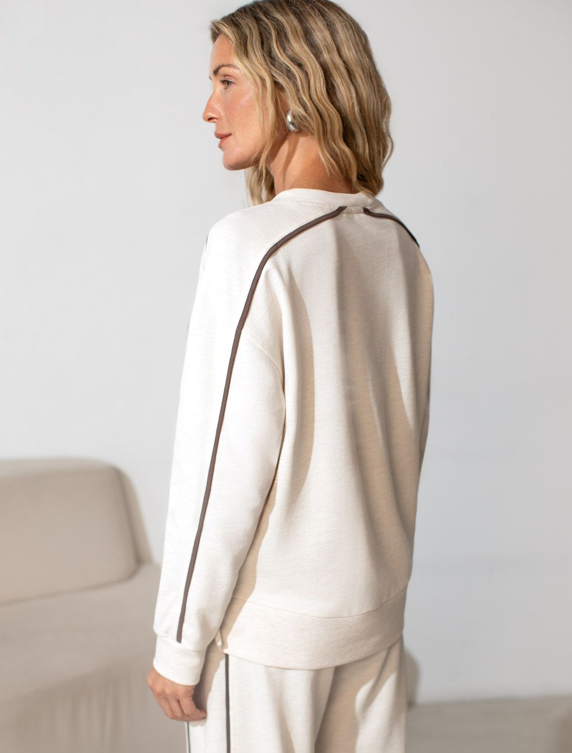 Свитшот с лампасами и разрезами из эластичного футера двухнитки без начеса